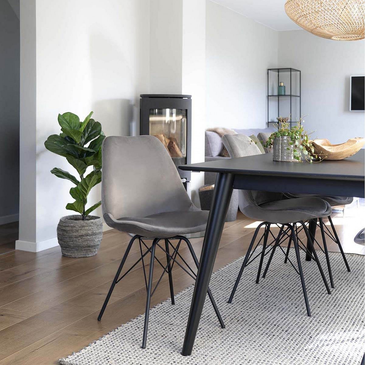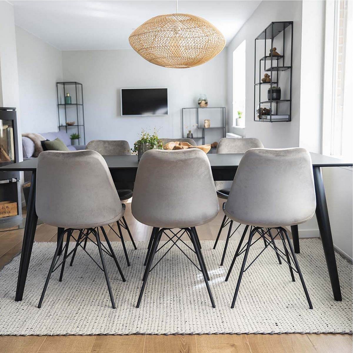 HAGA - Lot de 2 Chaises Velours Gris avec Piétement Métal Noir