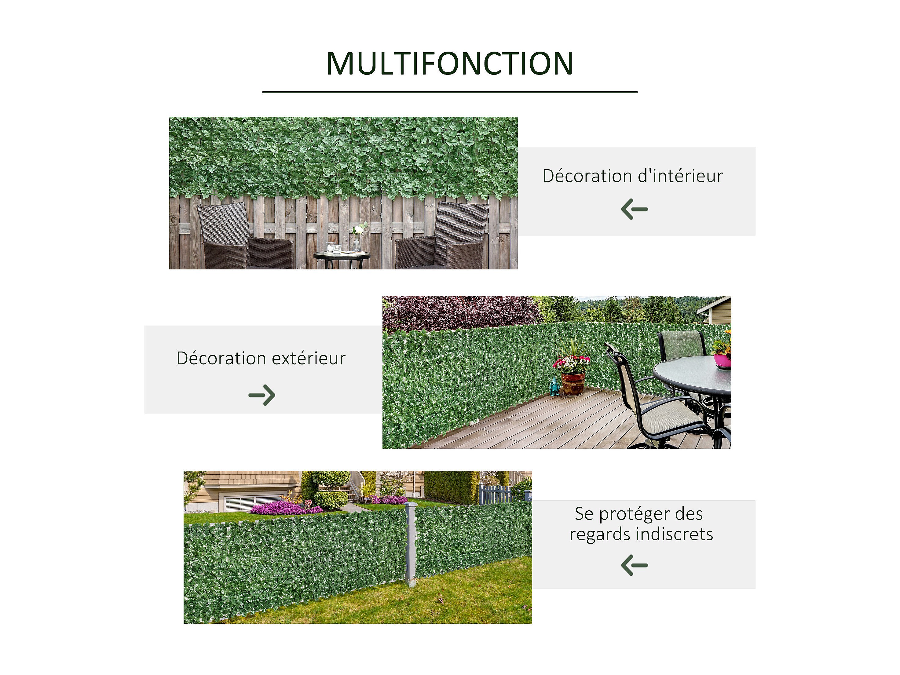 Haie artificielle lierre brise-vue rouleau dim. 3L x 1H m feuillage réaliste anti-UV vert