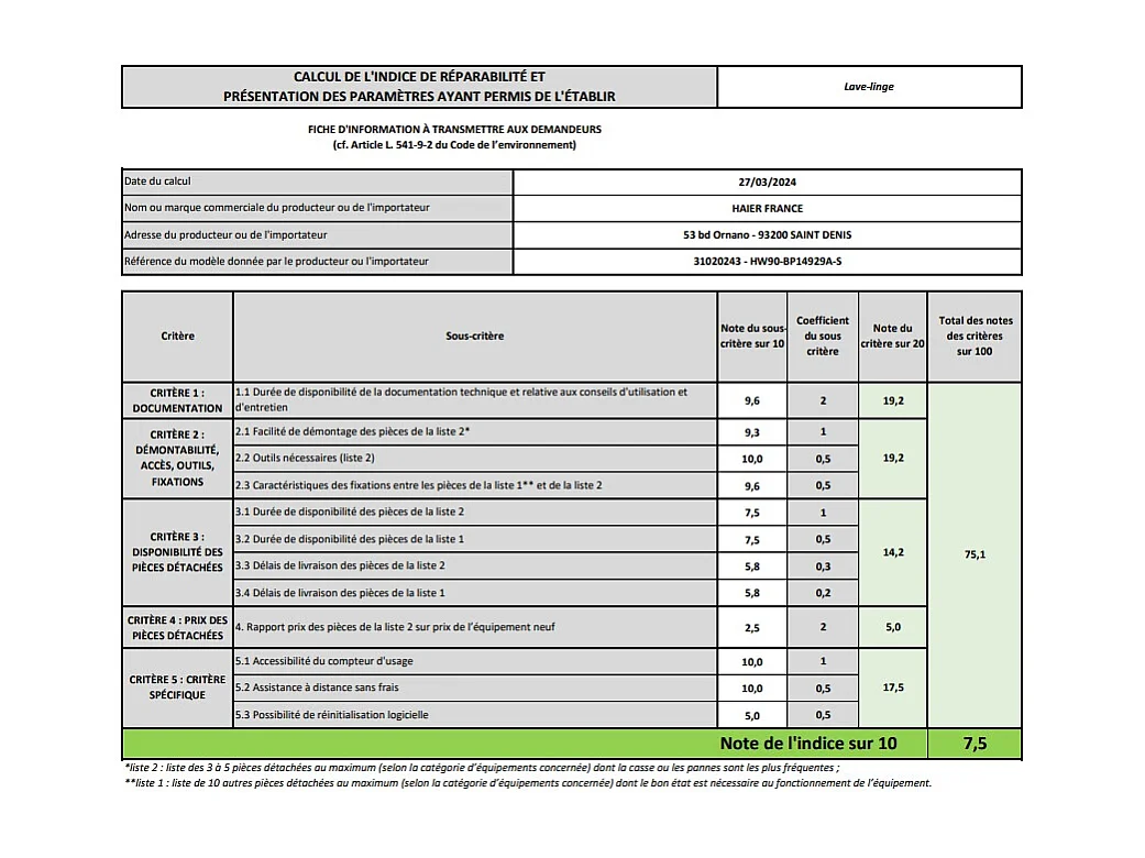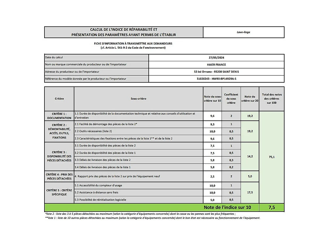 Haier Lave-linge hublot 9kg 1400 tours/min - HW90-BP14929A-S