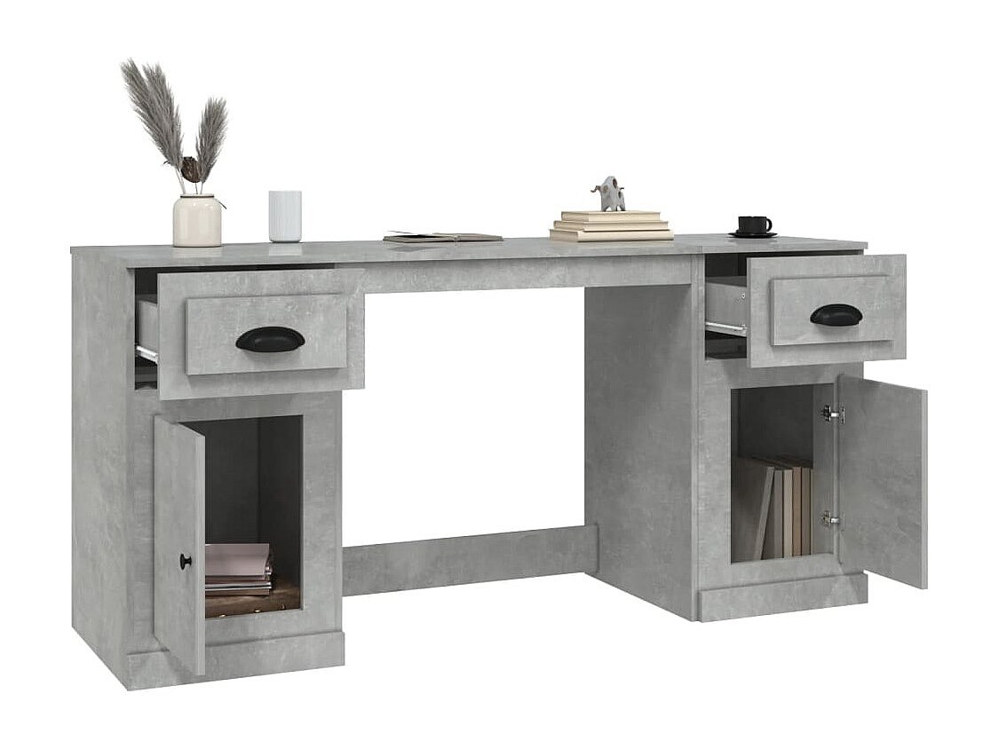 Hakan Bureau avec armoire gris béton bois d'ingénierie