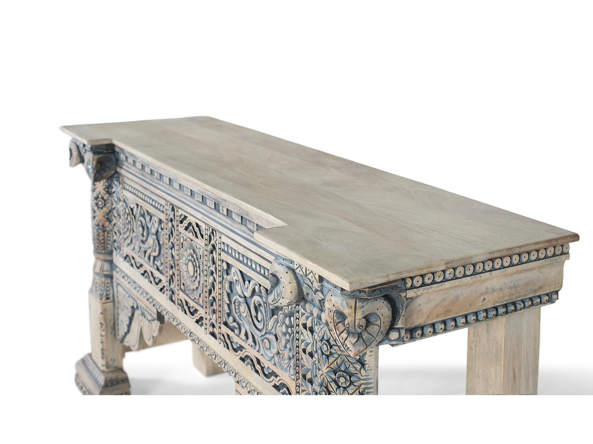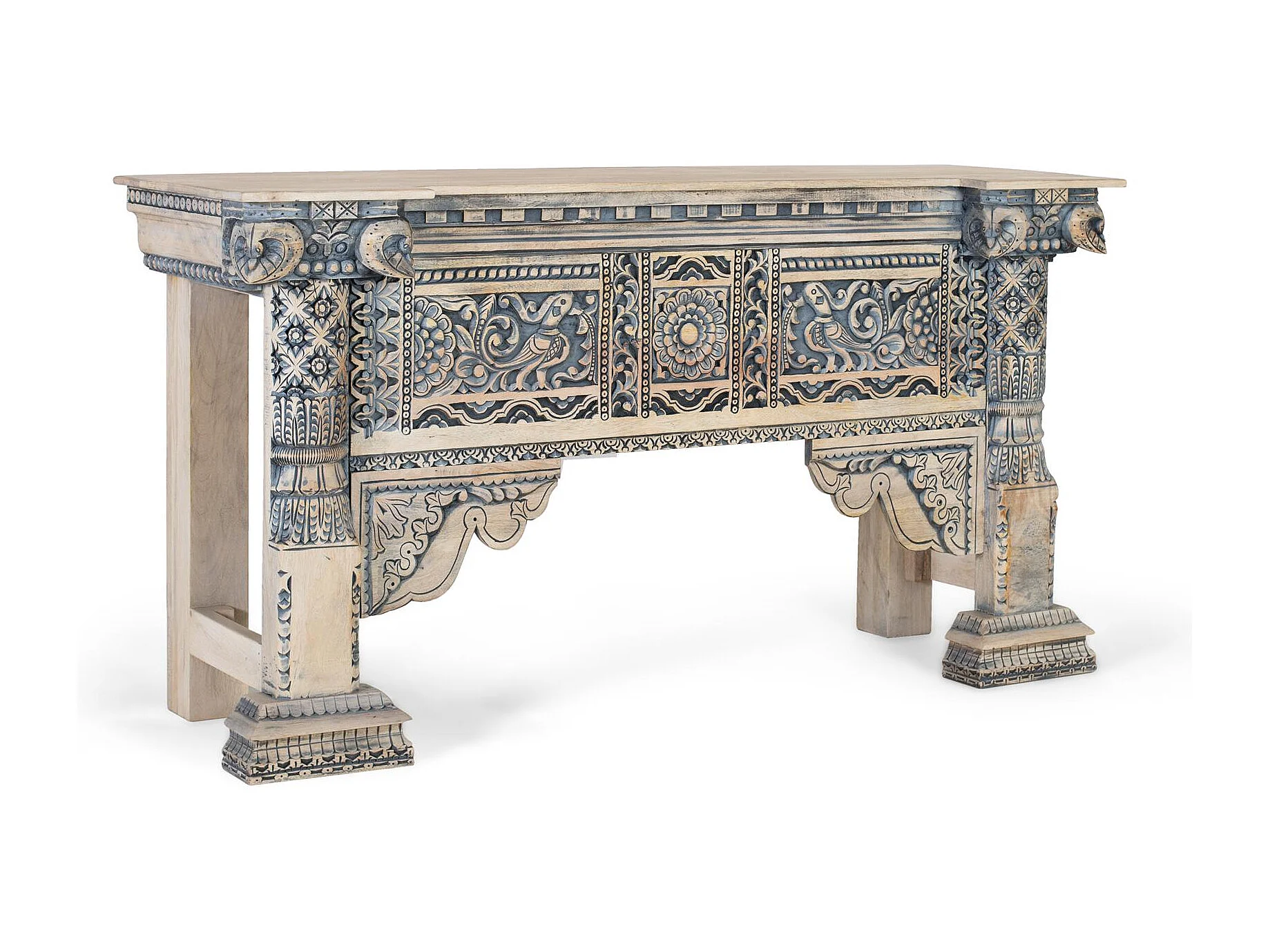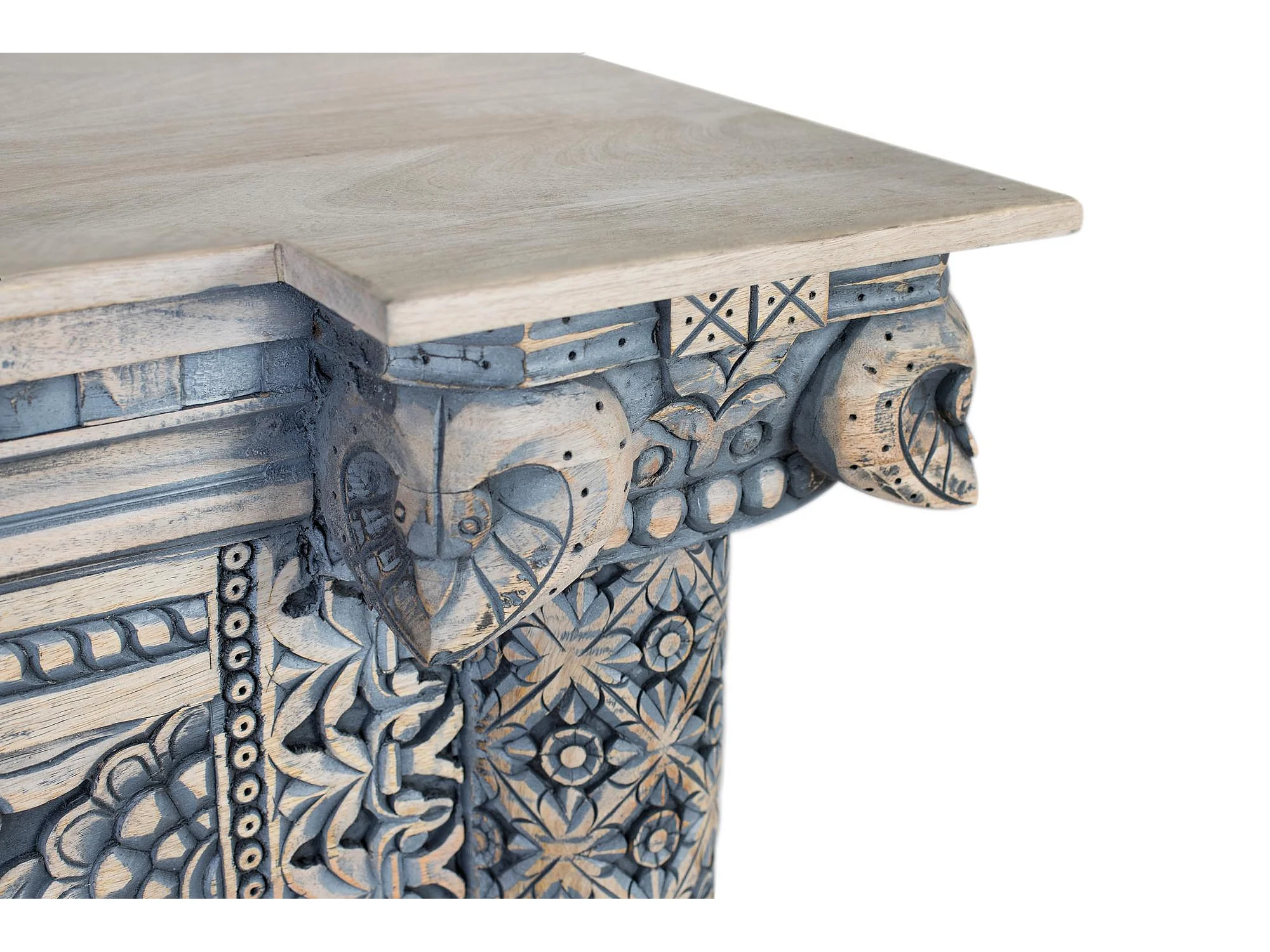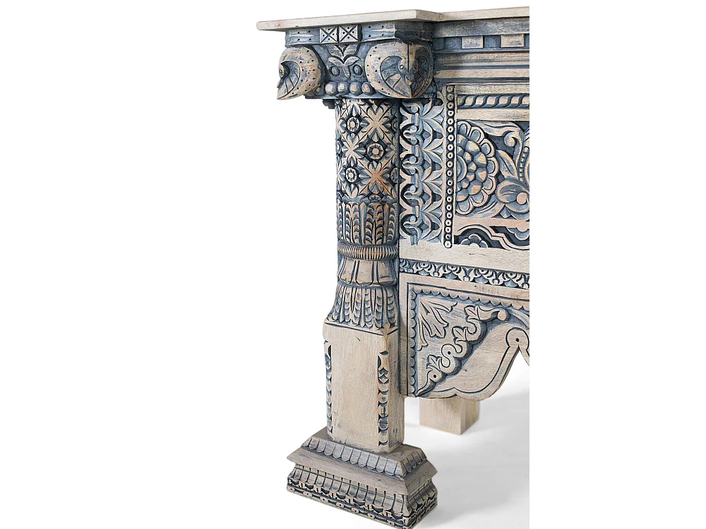 Hall d'entrée en bois de manguier avec colonnes sculptées à la main