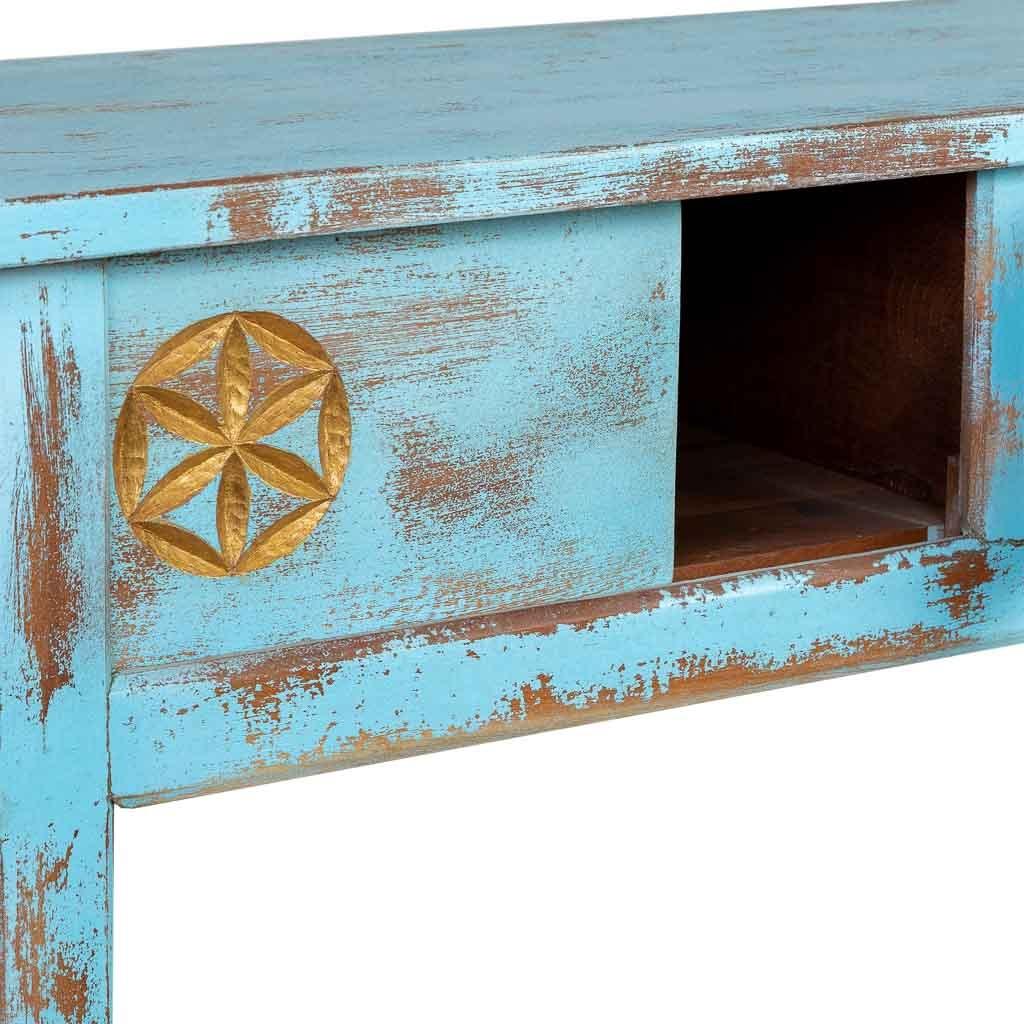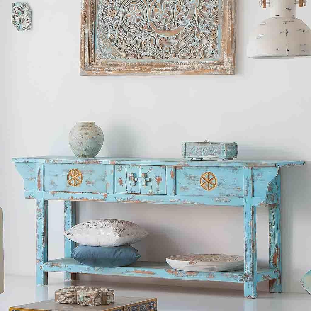 Hall en bois finition bleue vieillie artisanale 181x45x80