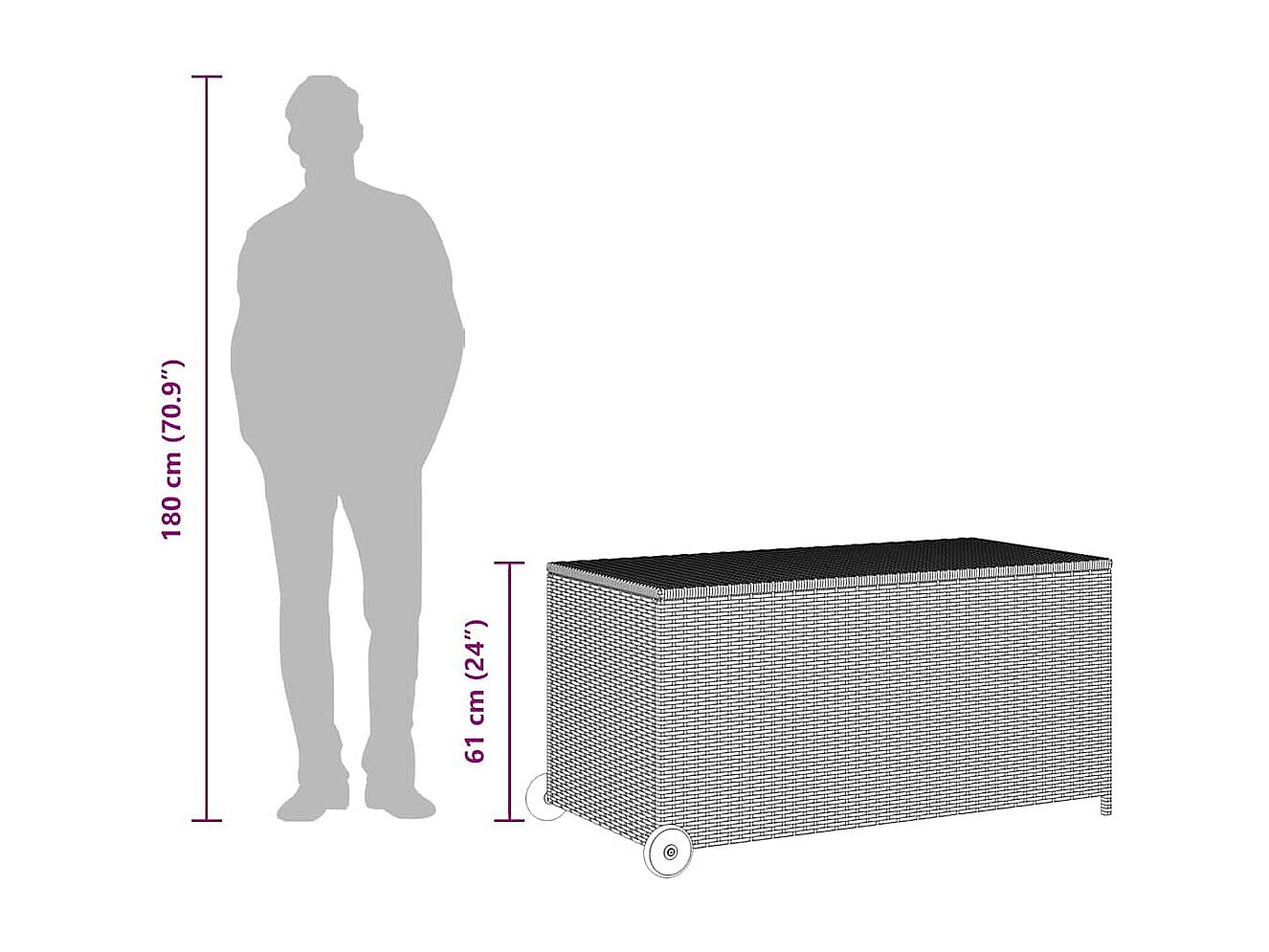Hallfast Boîte de rangement de jardin gris clair 120x65x61 cm rotin