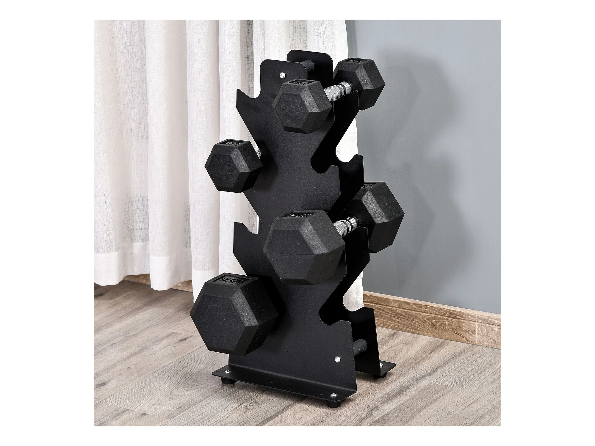 Haltères hexagonaux 2 pièces, fonte avec revêtement caoutchouc, noir (27.2x10.5x10.5cm)