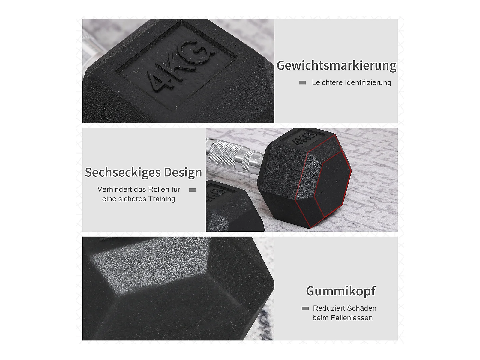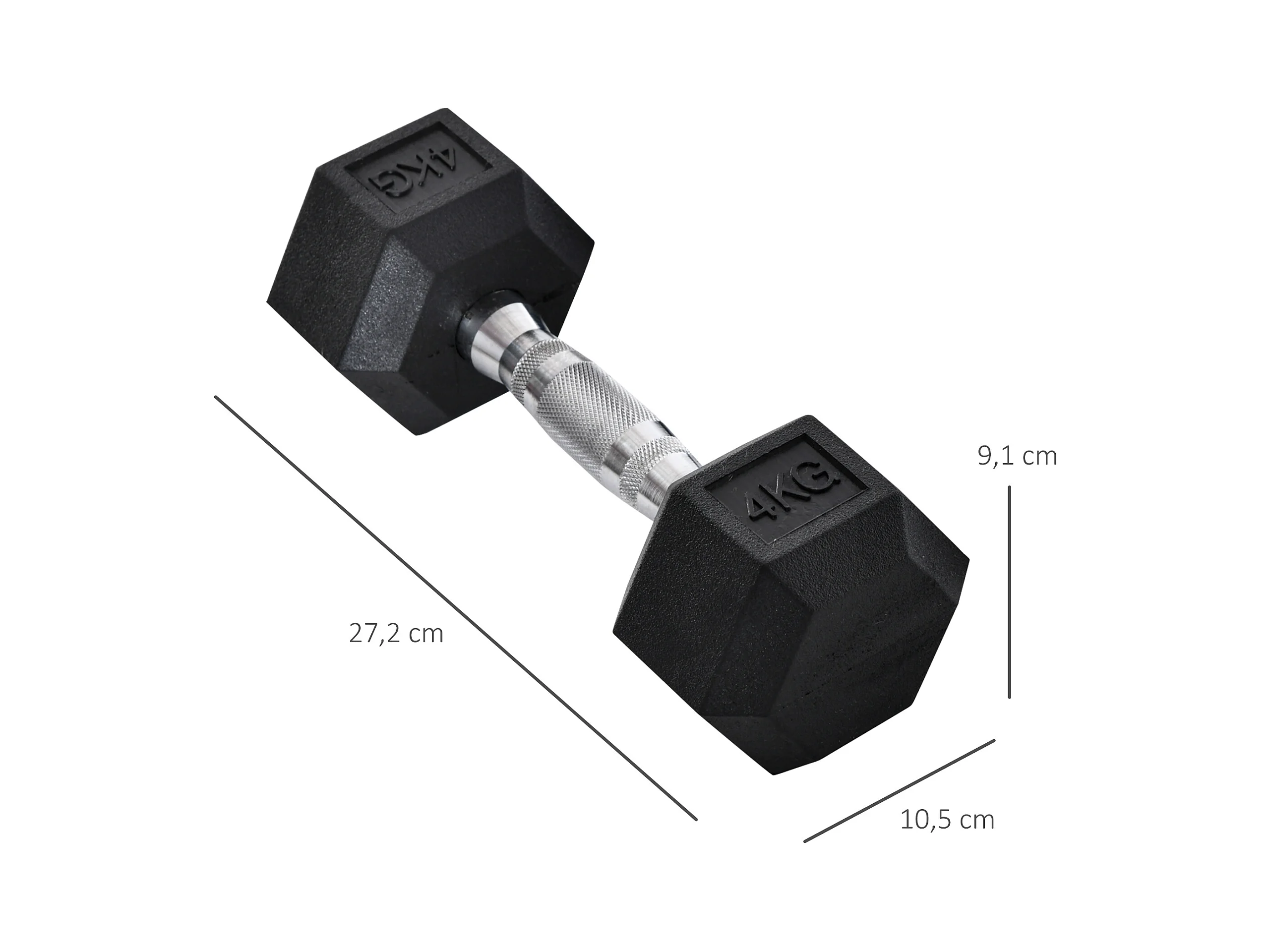 Haltères Hexagonales 2x4 kg, Métal et Caoutchouc, Noir (10.5x10.5x27.2 cm)