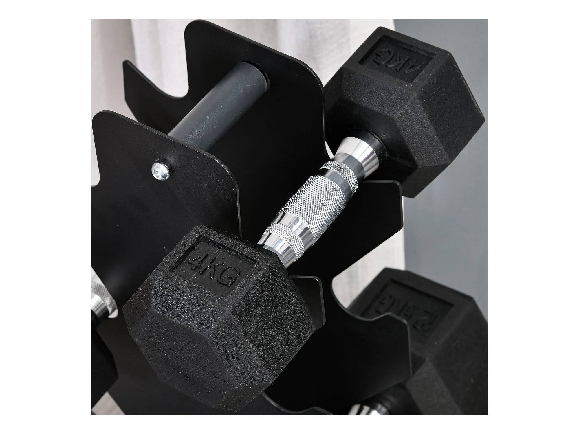 Haltères hexagonales en métal, 2x6 kg, recouvertes de caoutchouc, noir (11.5x11.5x28.8 cm)
