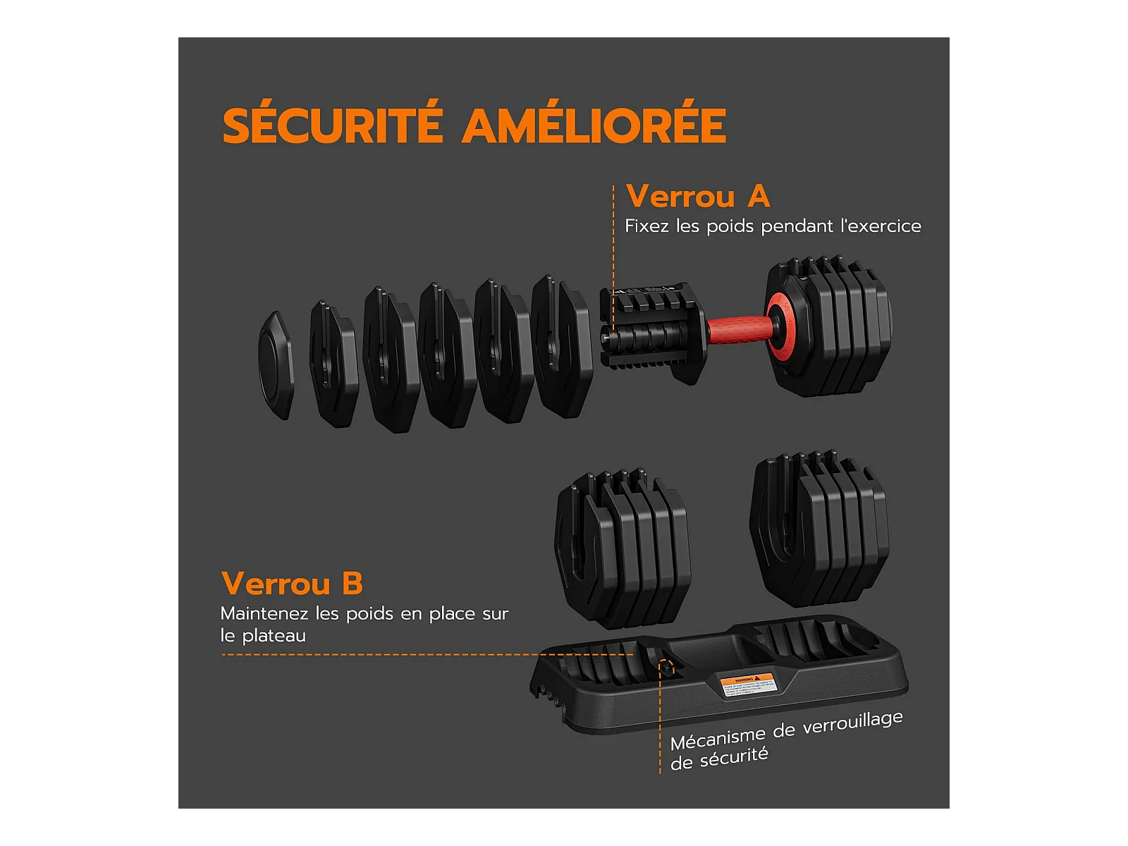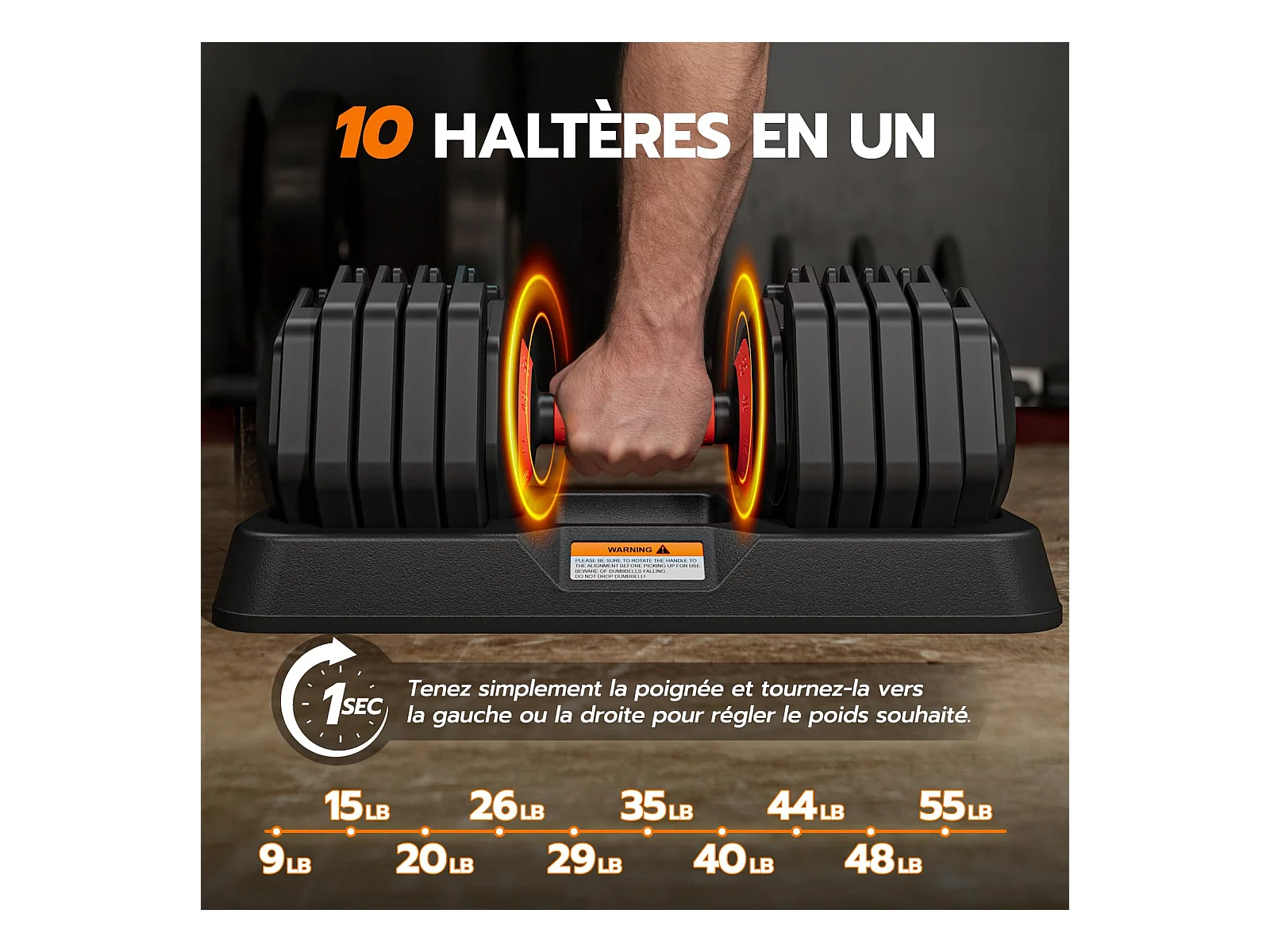 Haltères réglables 2-24,5 kg, 5/10 en 1 avec base de rangement, pour musculation, haltérophilie, entraînement maison et salle de sport