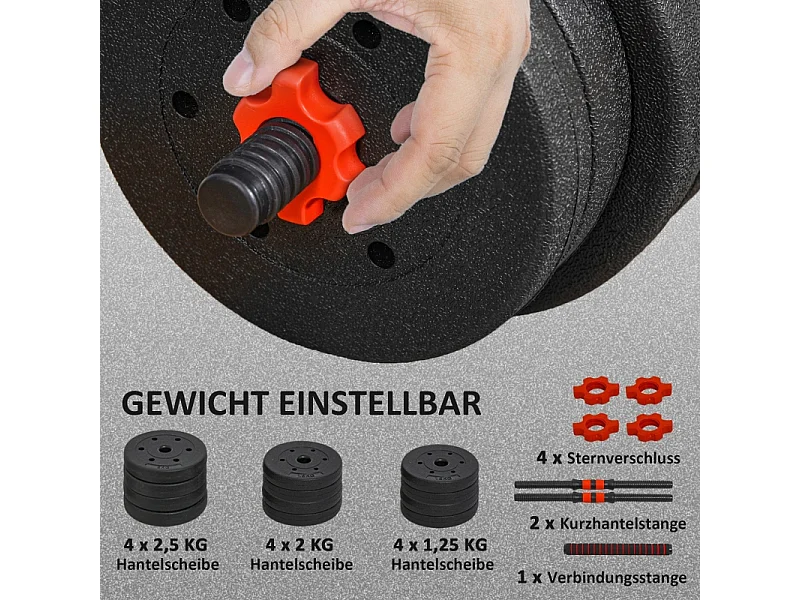 Haltères réglables 2 en 1, 20 kg, barre courte et longue, plastique, noir (45x20x20 cm)