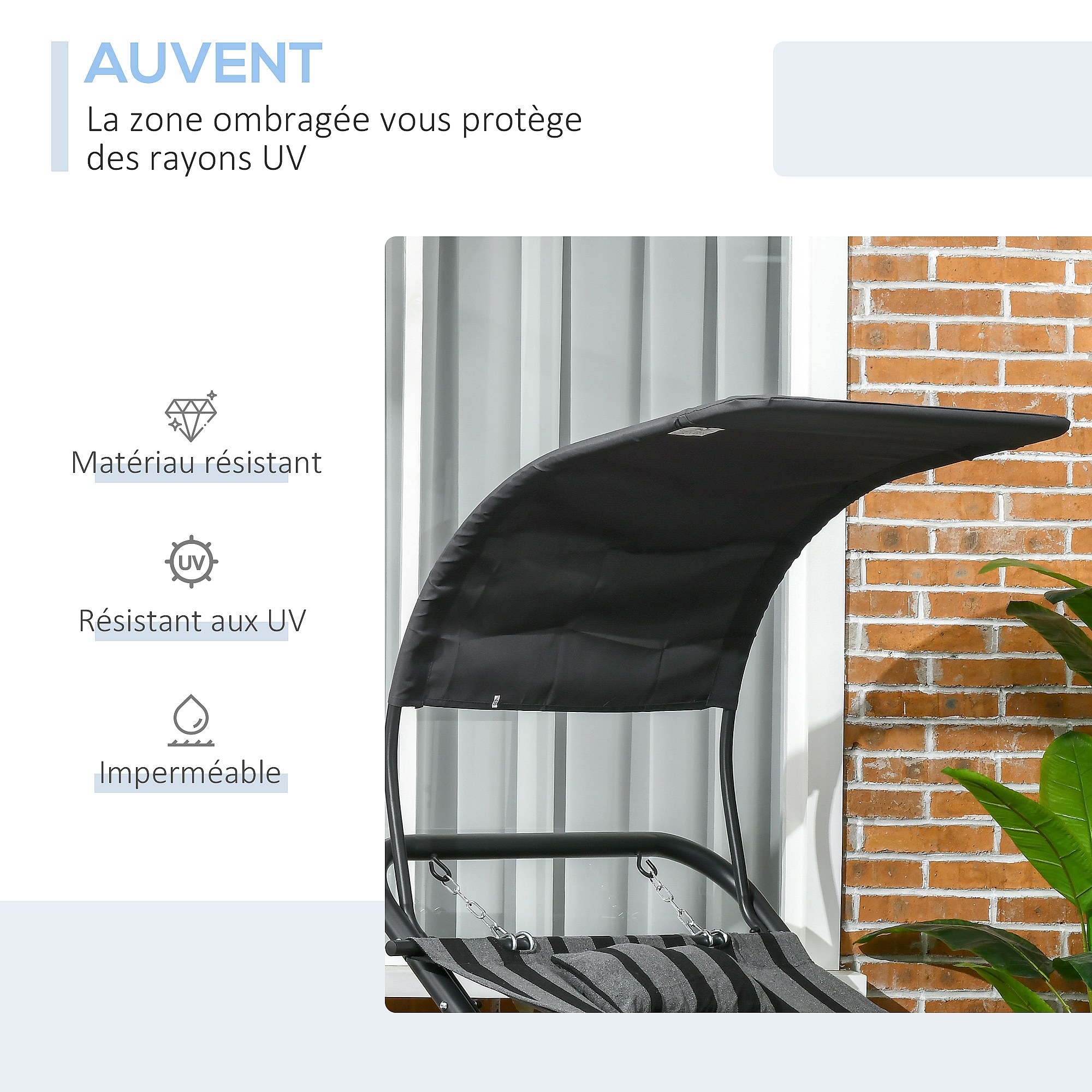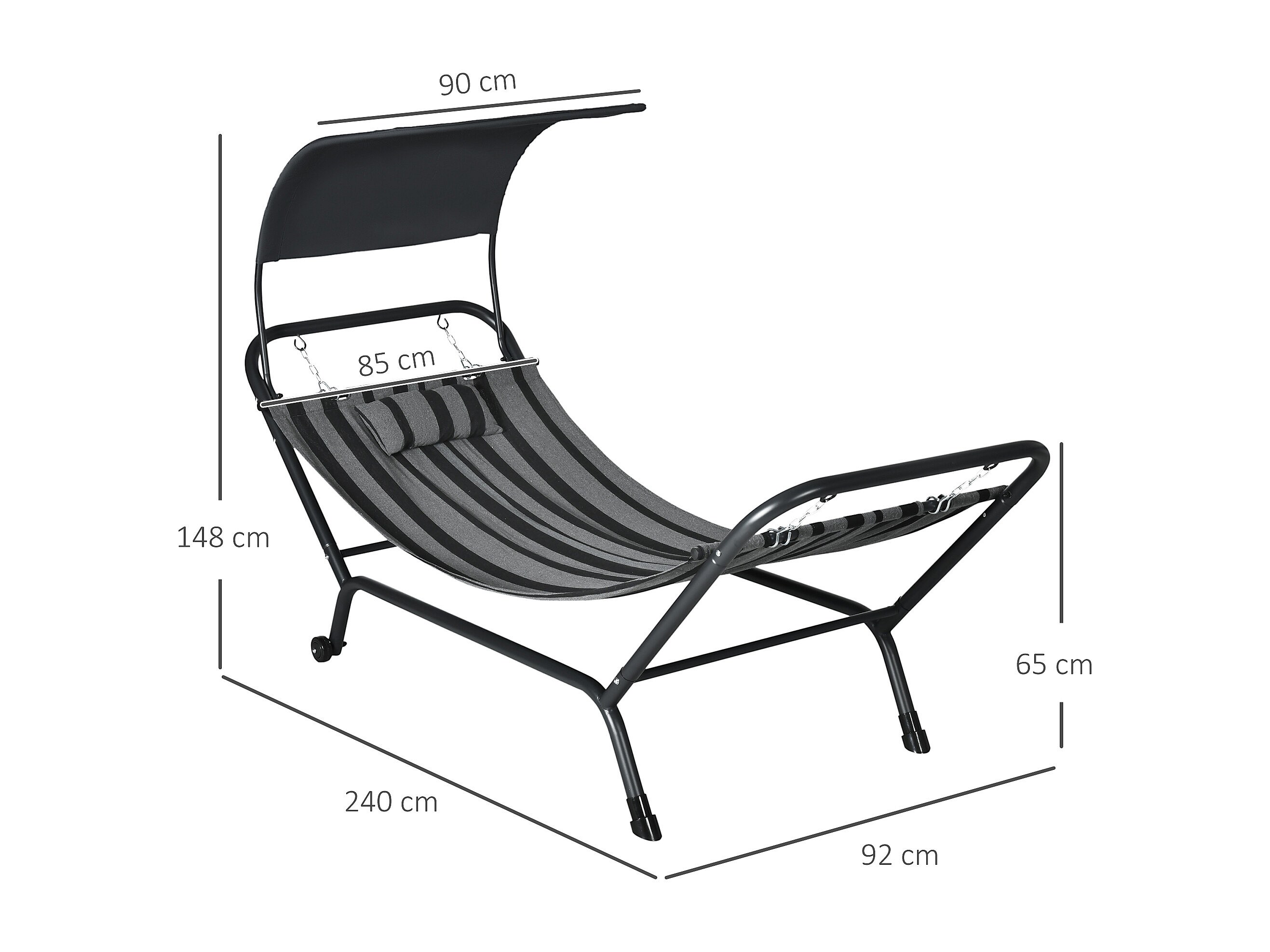 Hamac 1 personne design - auvent, tétière, 2 roulettes - dim. 240L x 92l x 148H cm - acier polyester gris