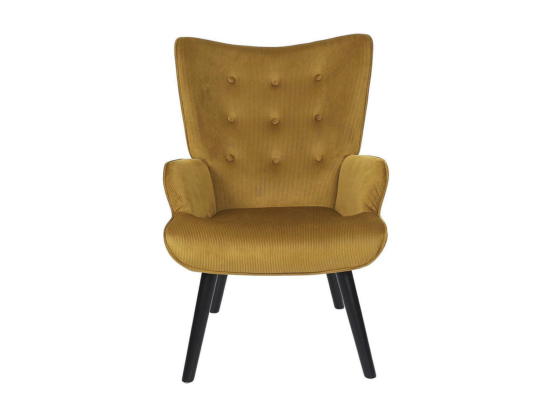 HAMZA - Fauteuil Tissu velours côtelé moutarde et piétement hévéa laqué noir