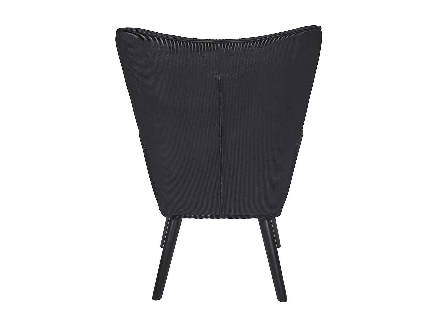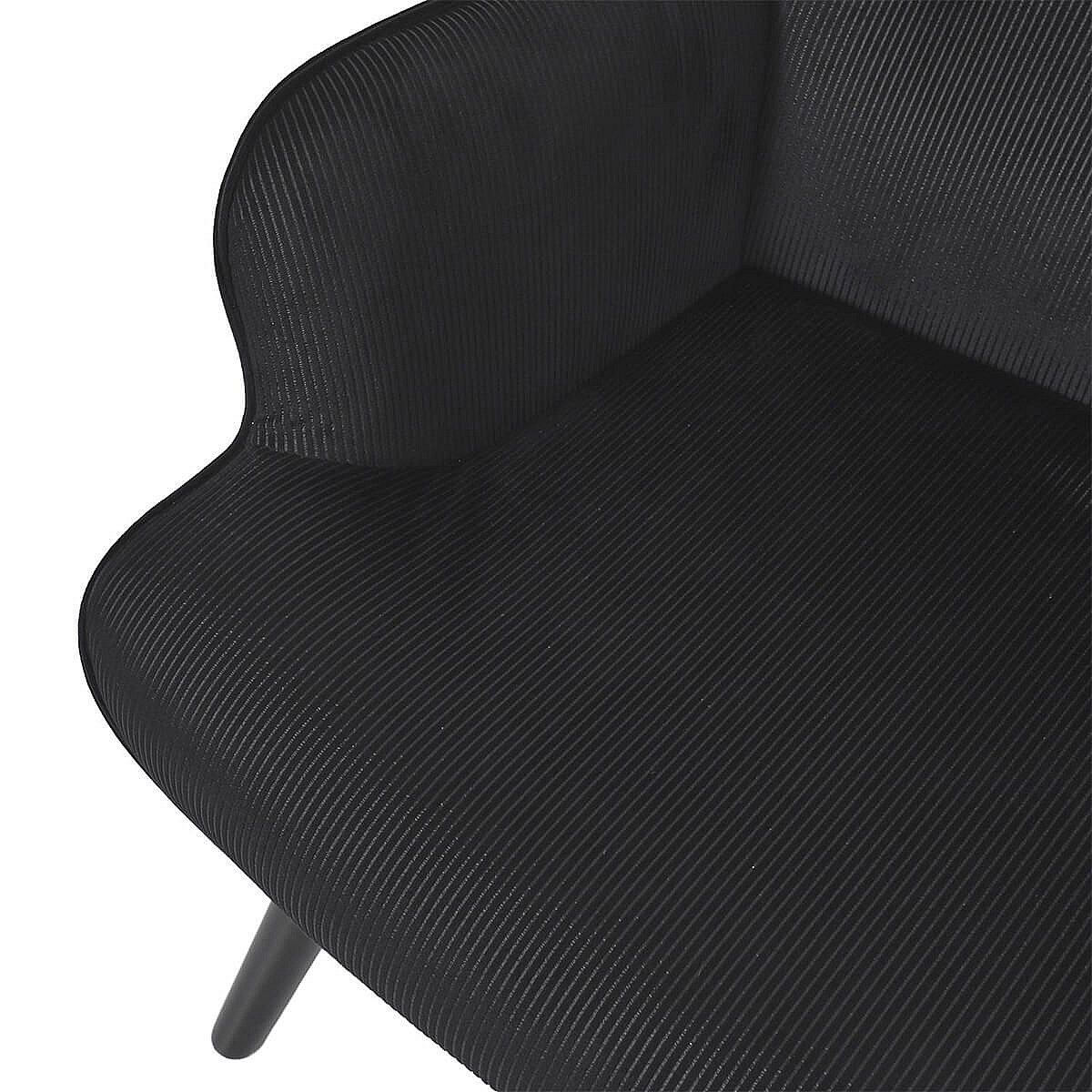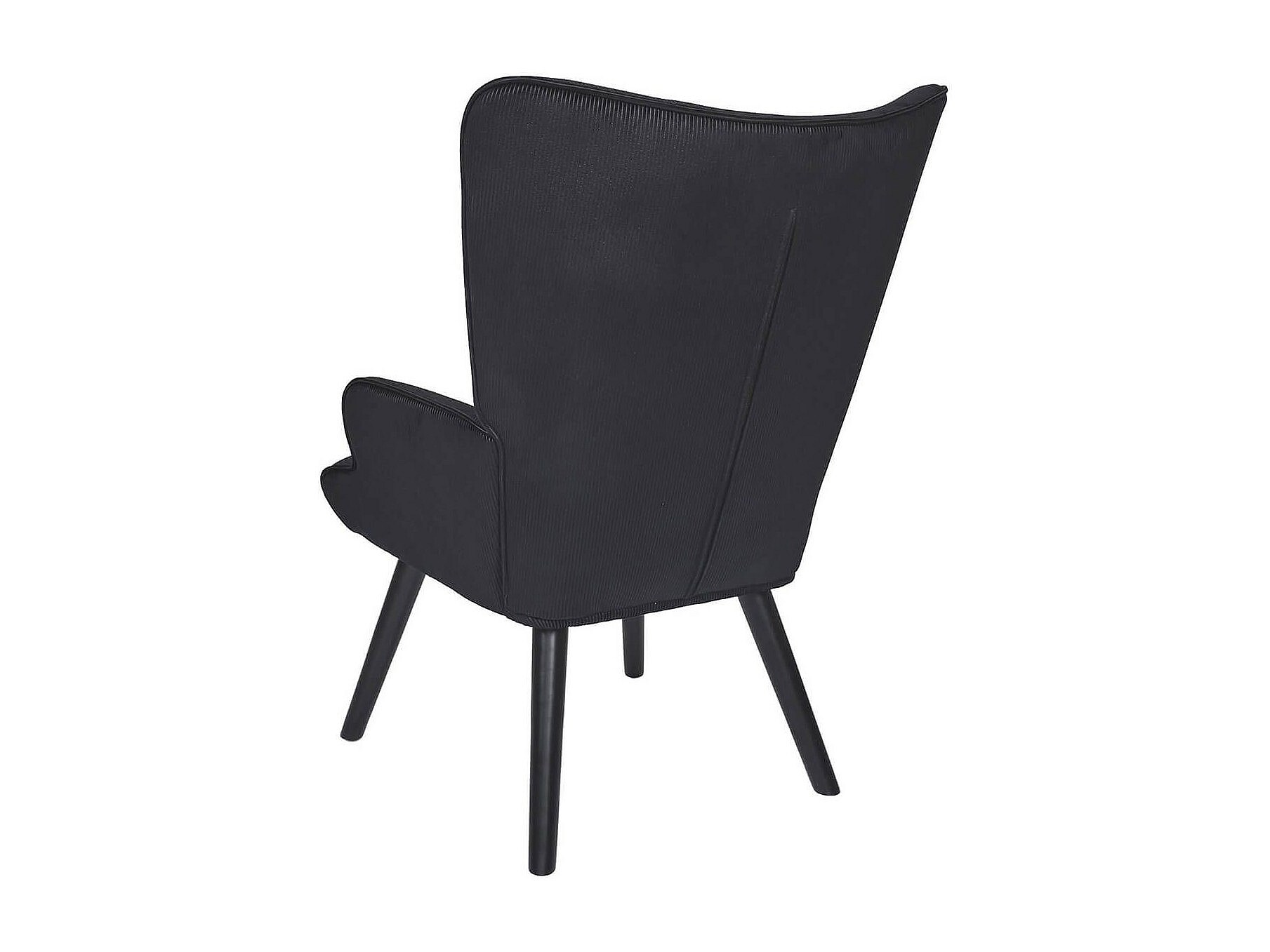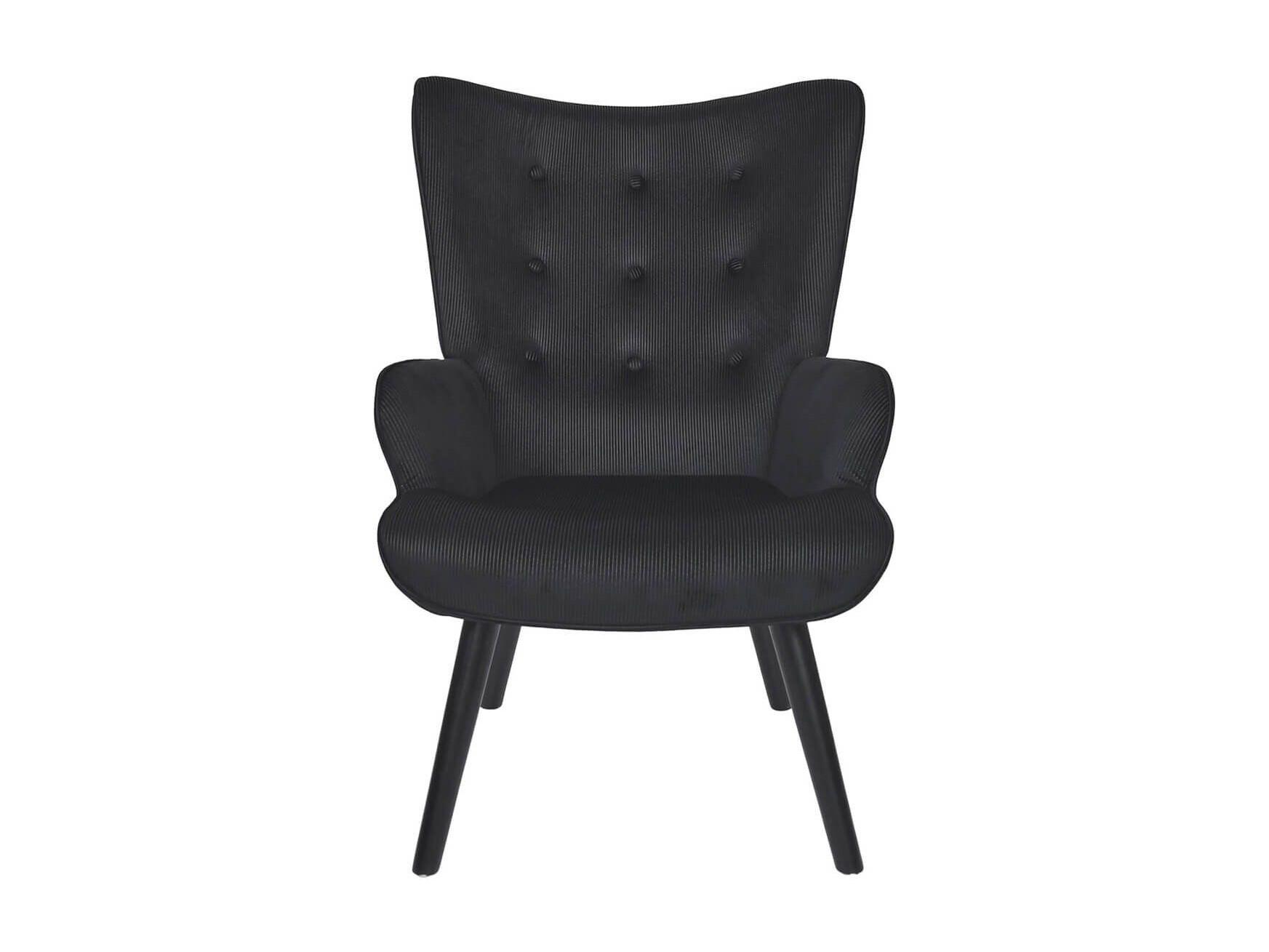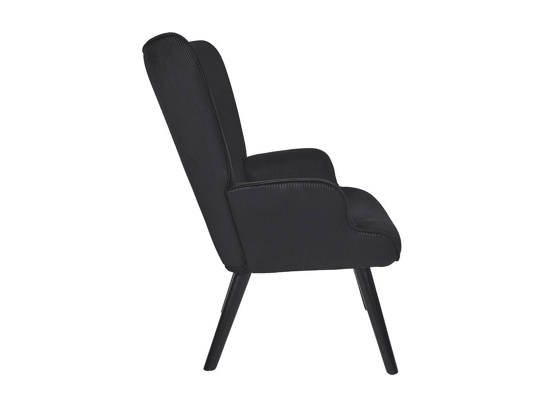 HAMZA - Fauteuil Tissu velours côtelé noir et piétement hévéa laqué noir