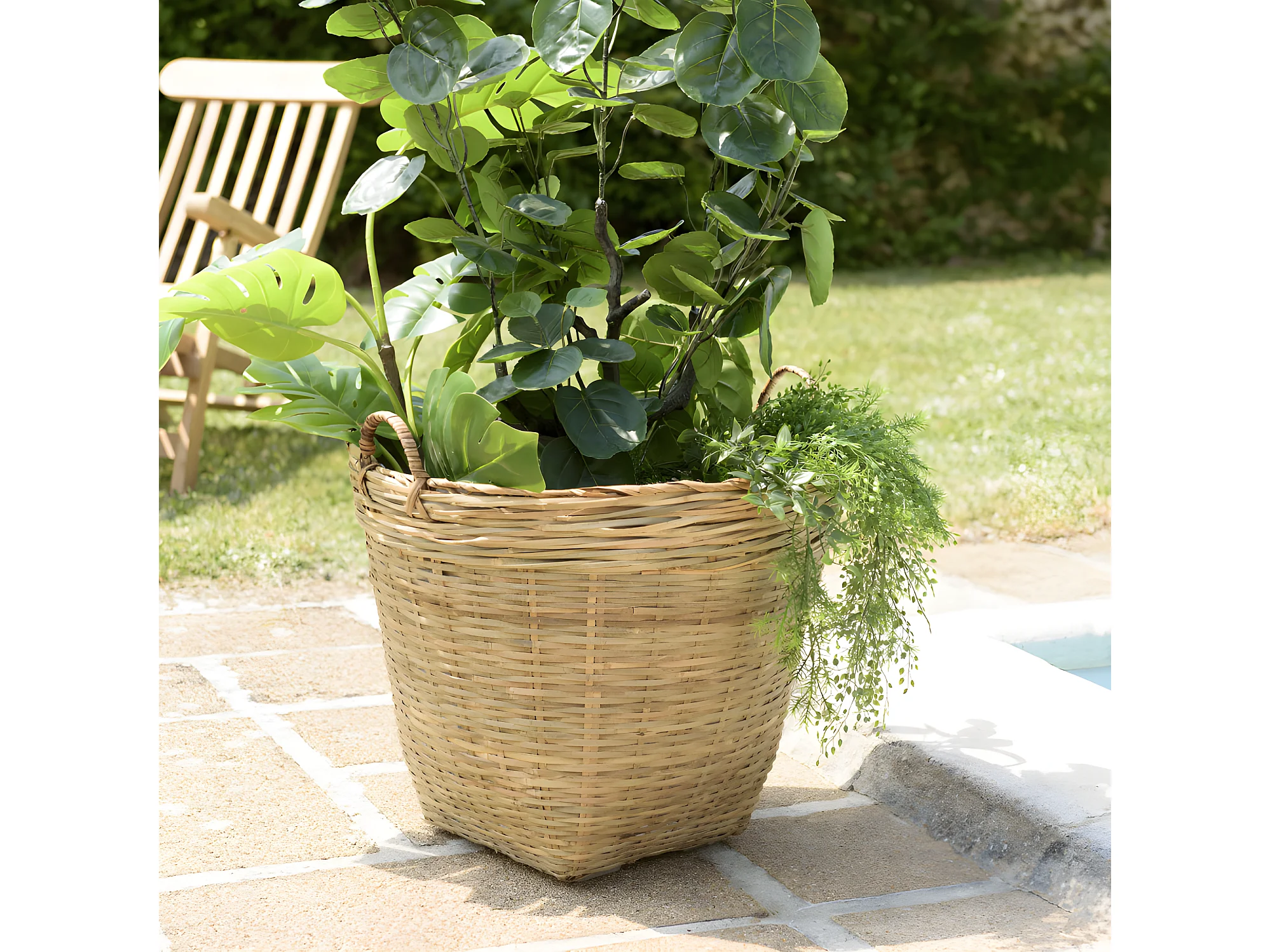 HANS - Pot de fleur rond 60x60cm en bambou naturel avec anses