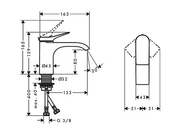 HANSGROHE Mitigeur de lavabo 80 sans tirette ni vidage blanc mat