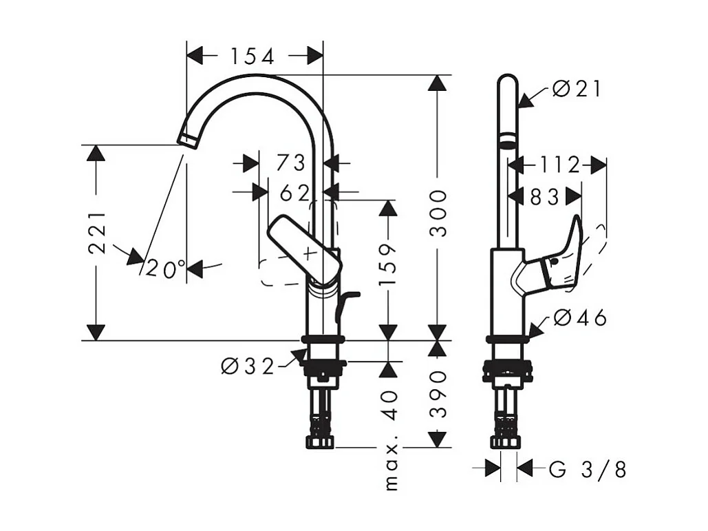 HANSGROHE Mitigeur lavabo Logis 210 bec haut avec tirette et vidage synthétique chromé
