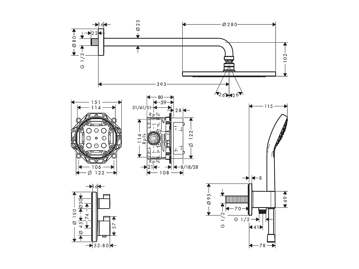 HANSGROHE Pack encastré avec mitigeur thermostatique Ecostat S chromé
