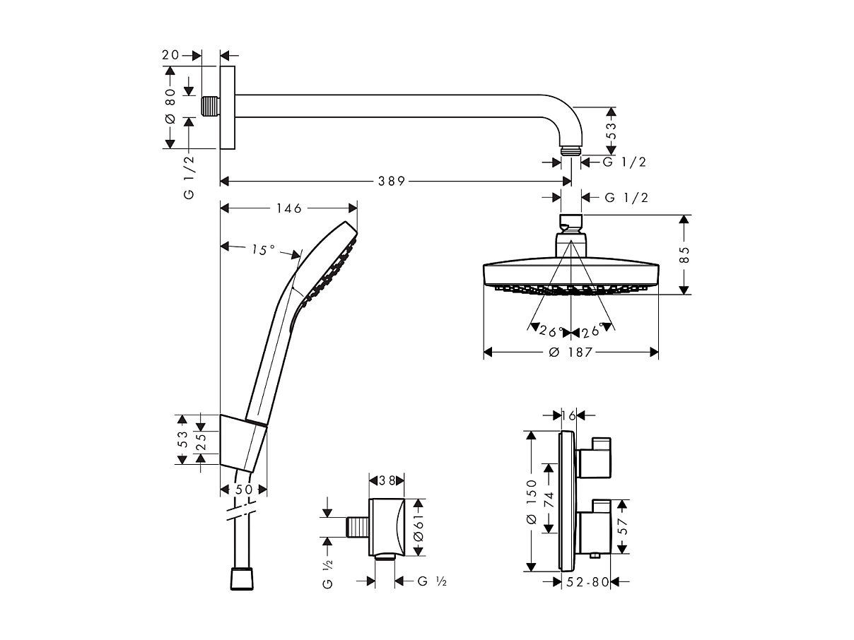 HANSGROHE Pack encastré Croma Select S avec mitigeur thermostatique Ecostat S chromé