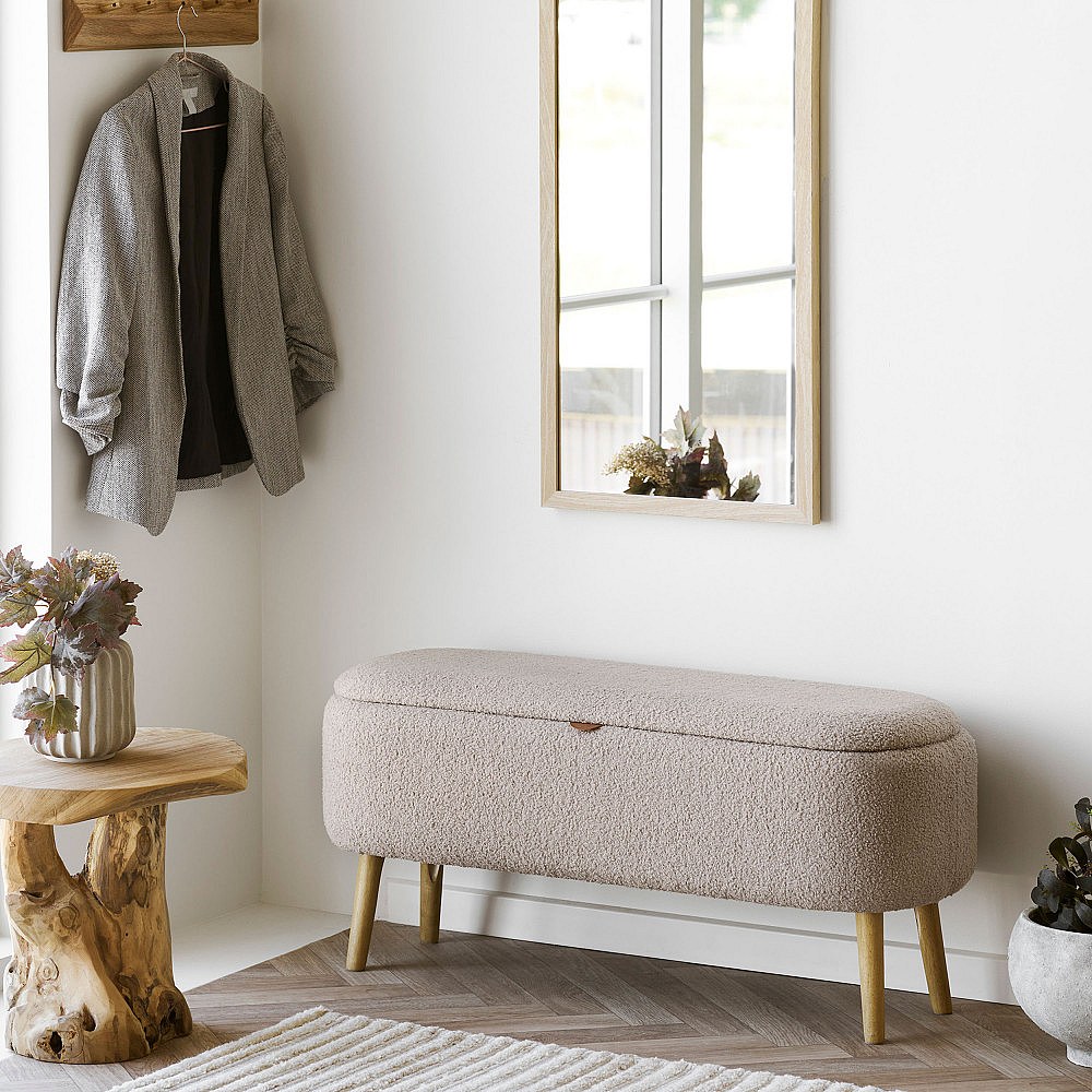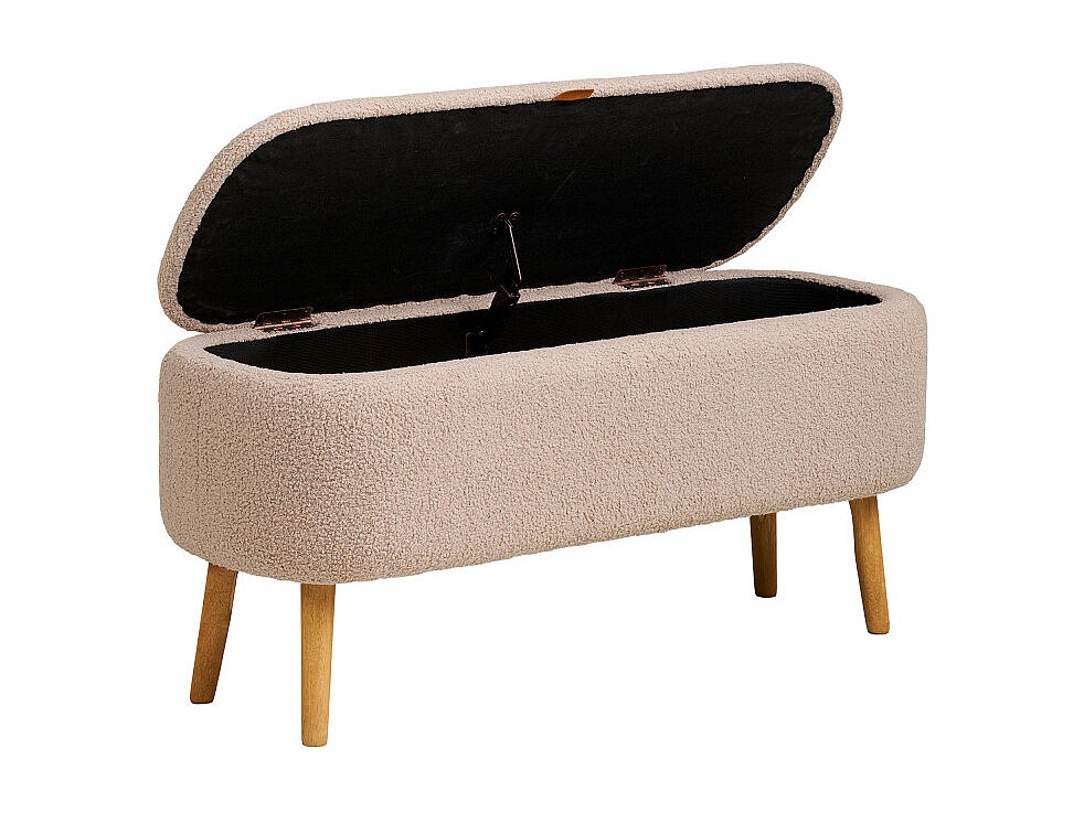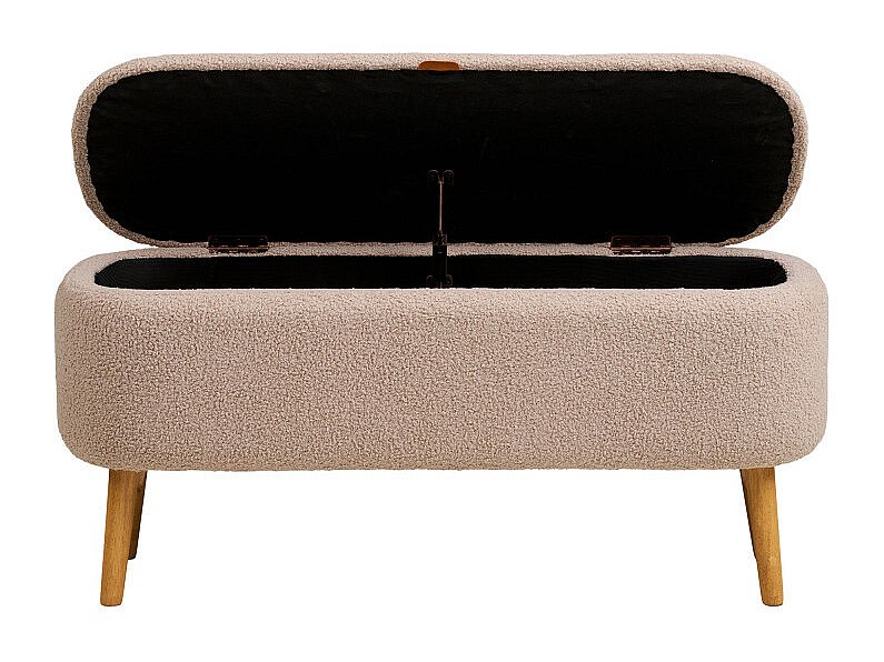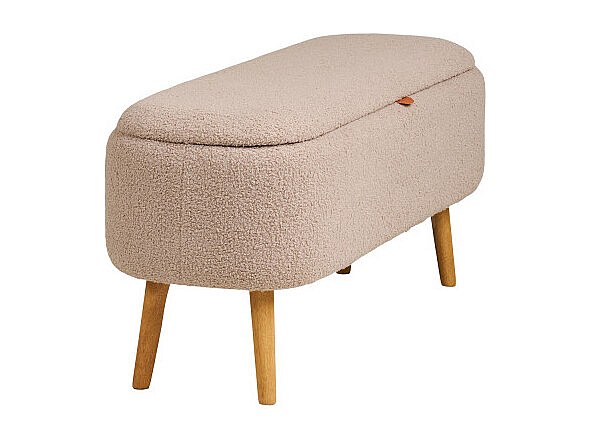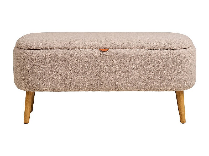 Harlow - Banc coffre en tissu bouclette et bois L95cm - Beige