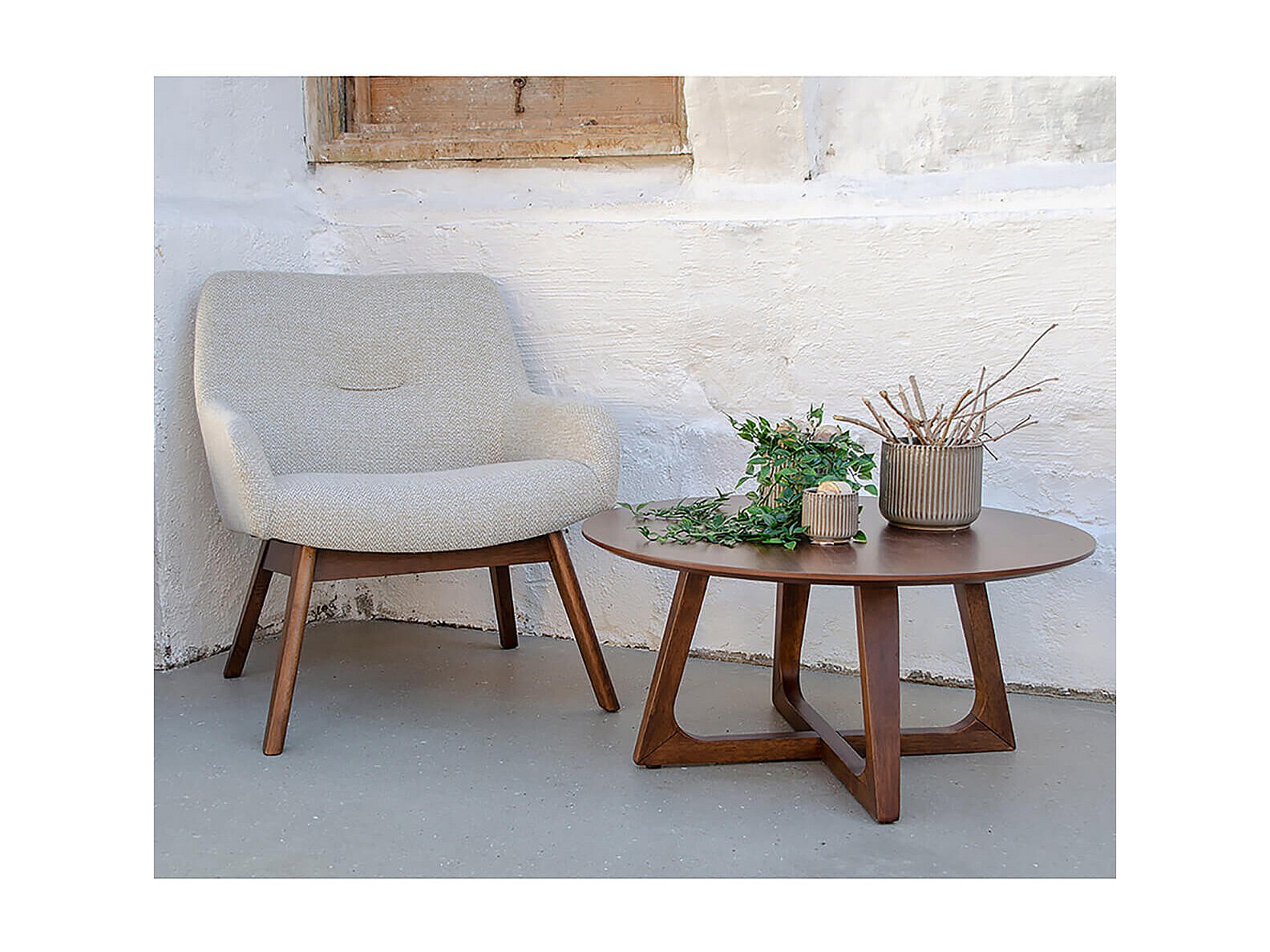 HARROW - Fauteuil Noyer Massif Naturel et Tissu Sable