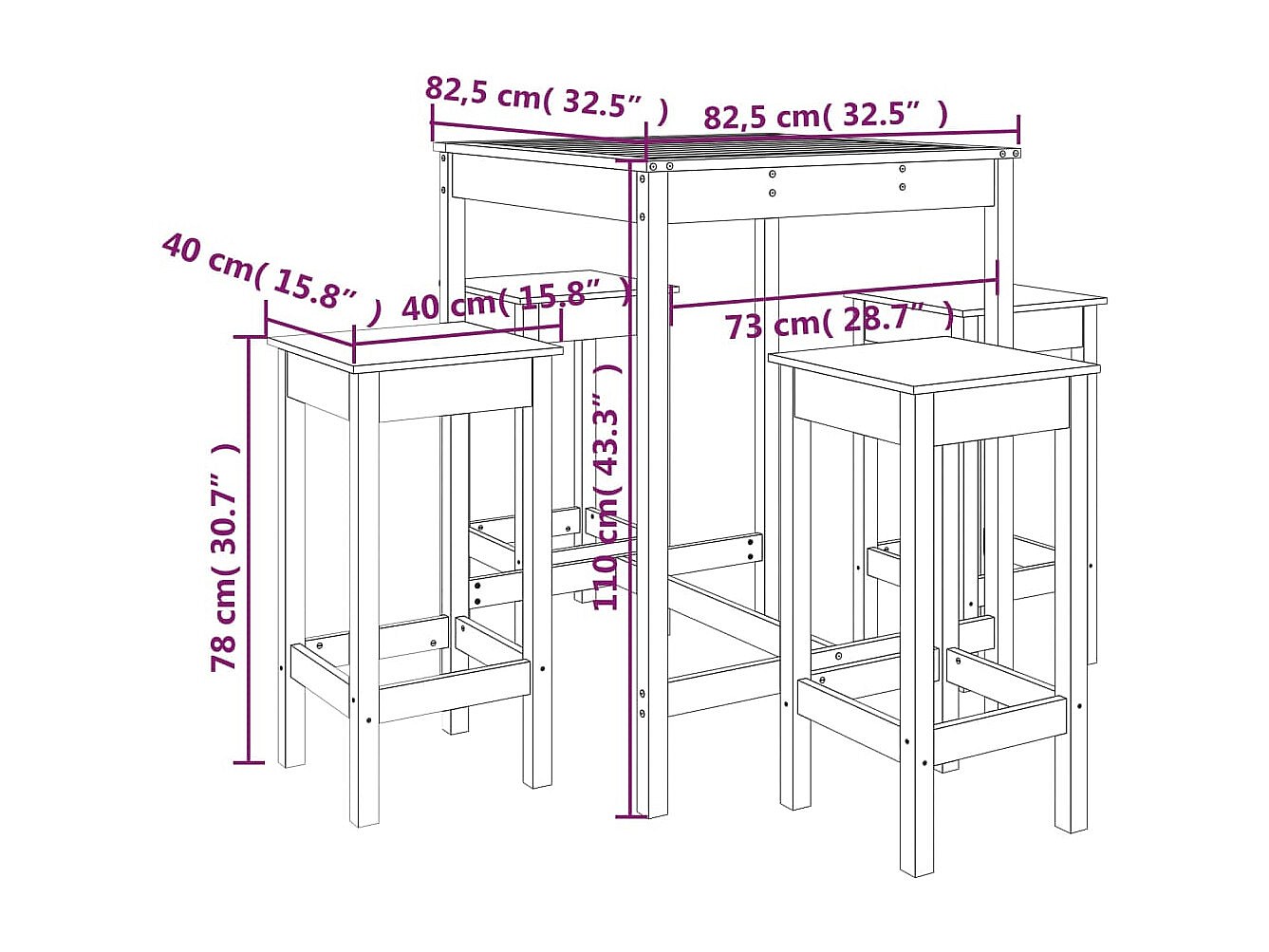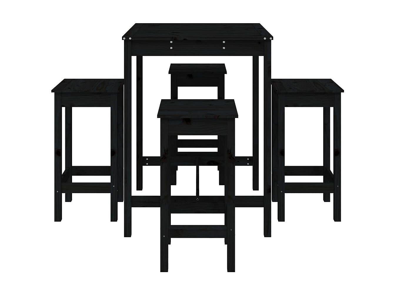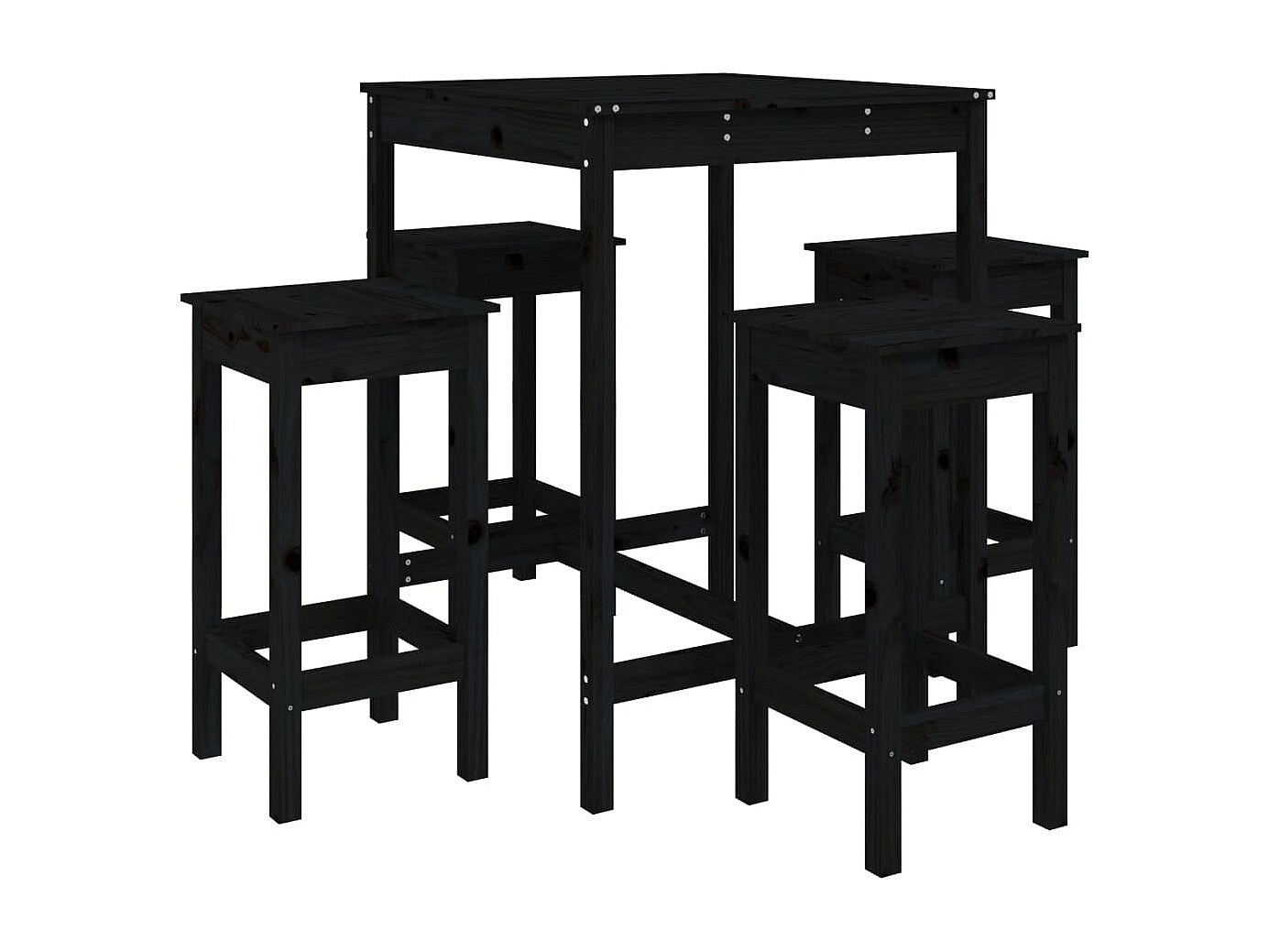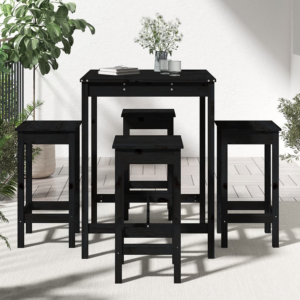 Hendrin Ensemble de bar de jardin 5 pcs noir bois de pin massif