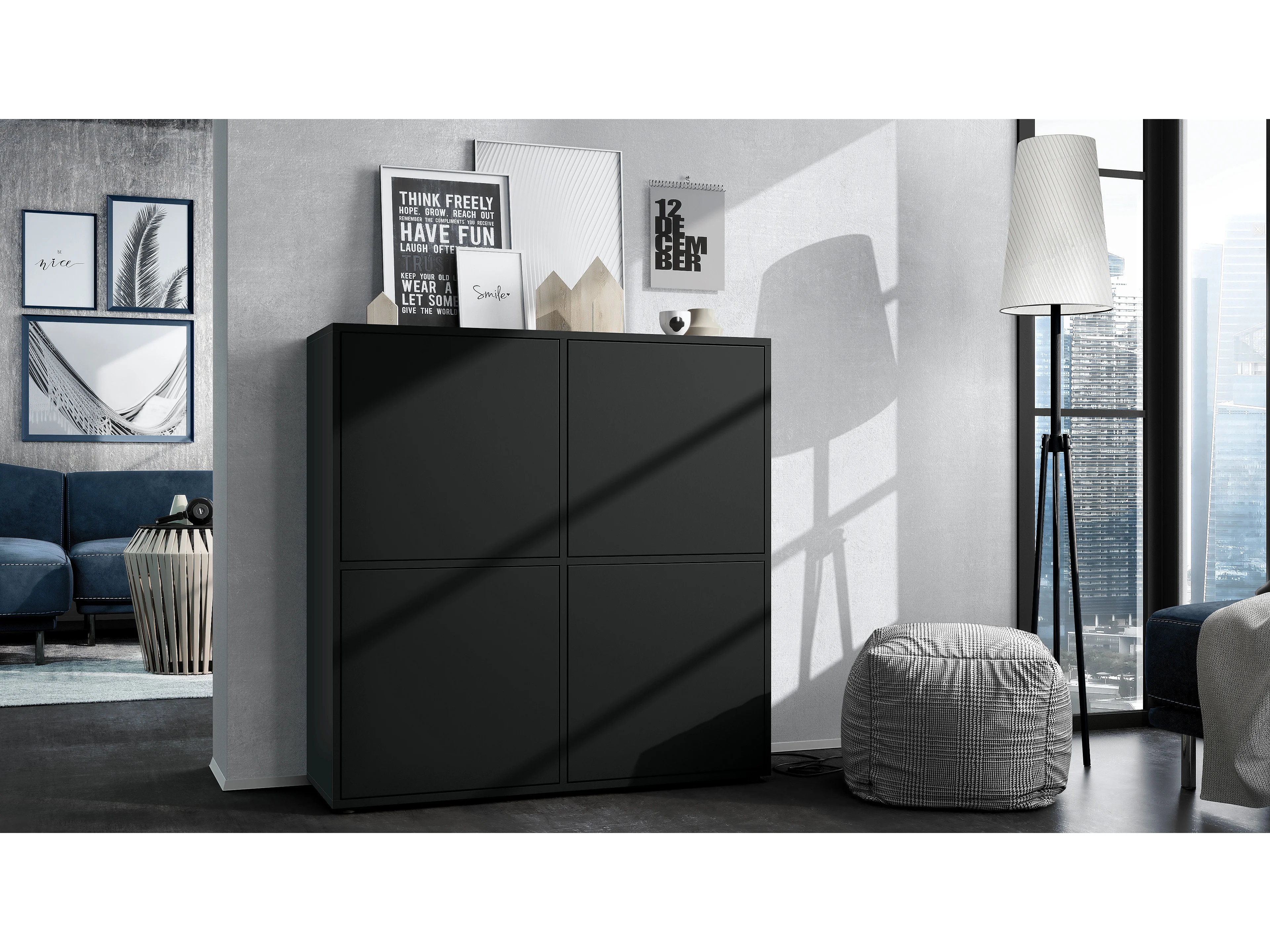 Highboard Cuba V2 Placard 104 x 105,5 x 35,5 cm Buffet à 8 compartiments, caisson en noir mat / façades en Noir mat