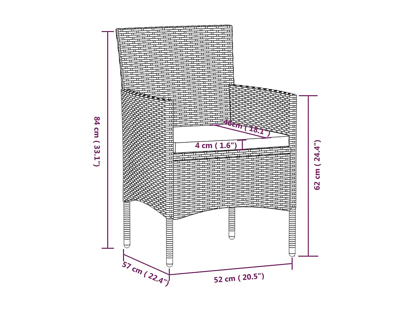 Hillsboro Ensemble à manger de jardin coussins 7pcs Gris et noir