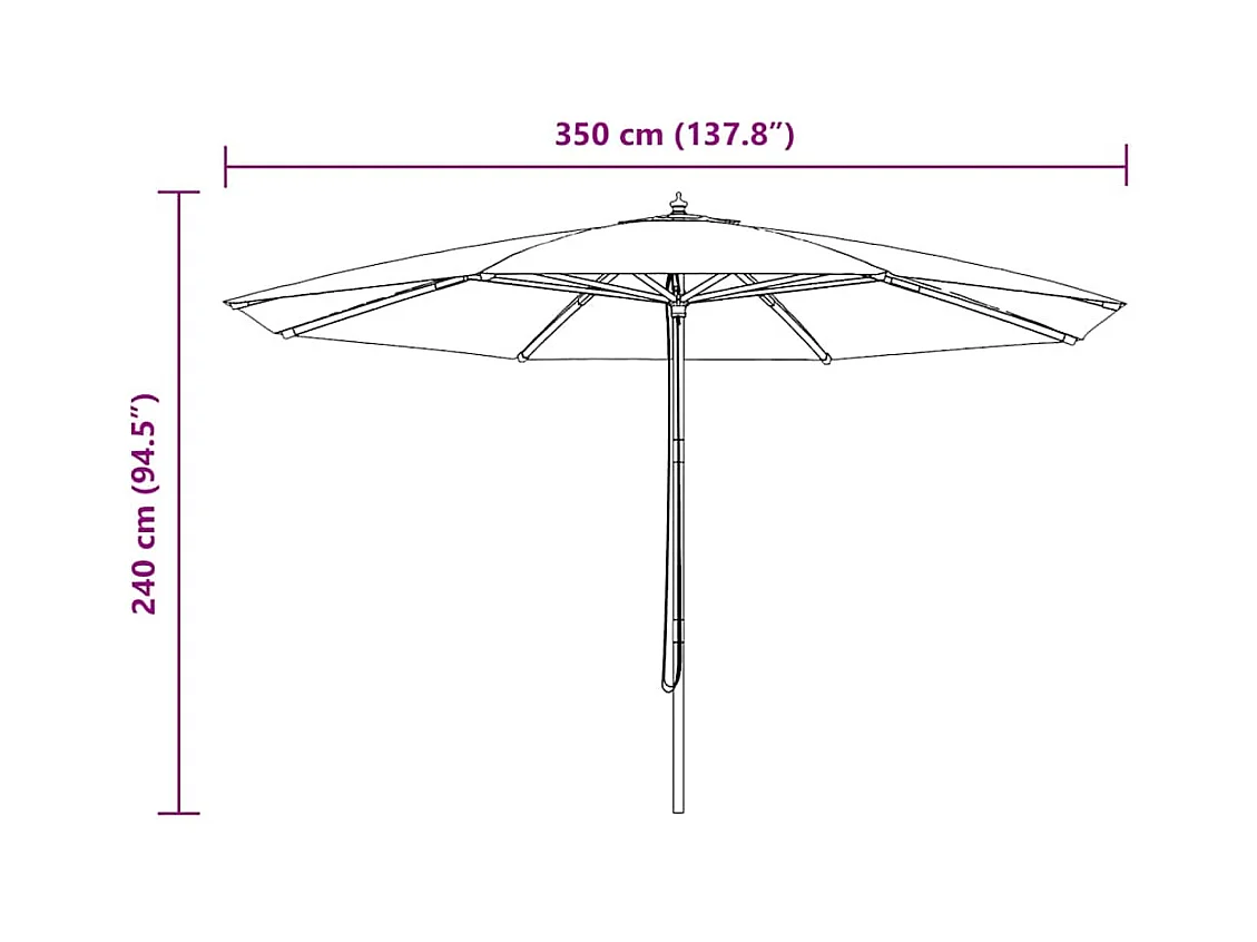 Hollywood Parasol d'extérieur avec mât en bois 350 cm Bleu