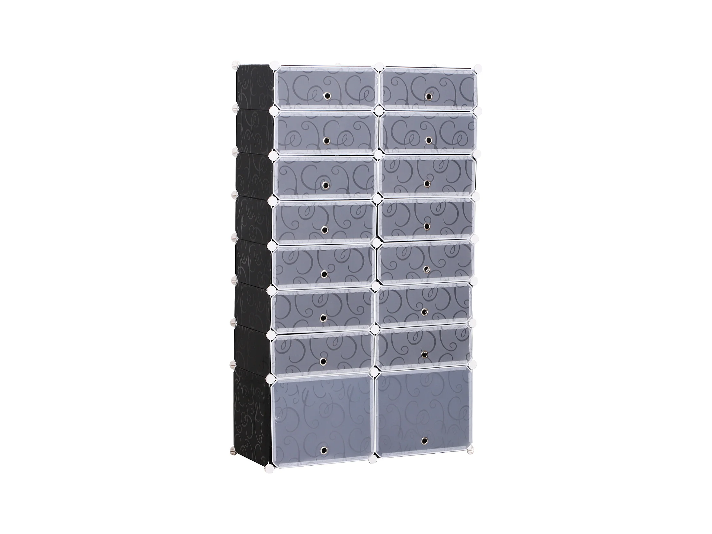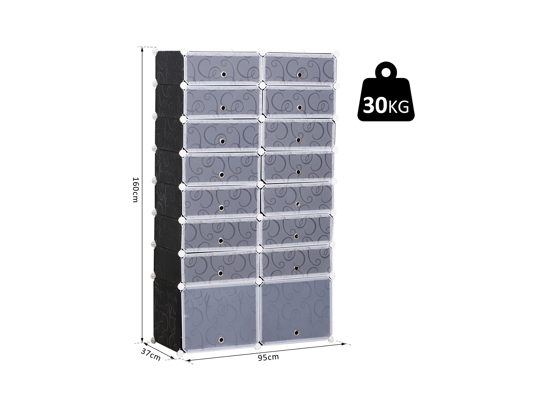 Armoire à chaussures range chaussures L 95 x l 37 x H 160 cm 14 cubes rectangulaires et 2 grands cubes noir et blanc