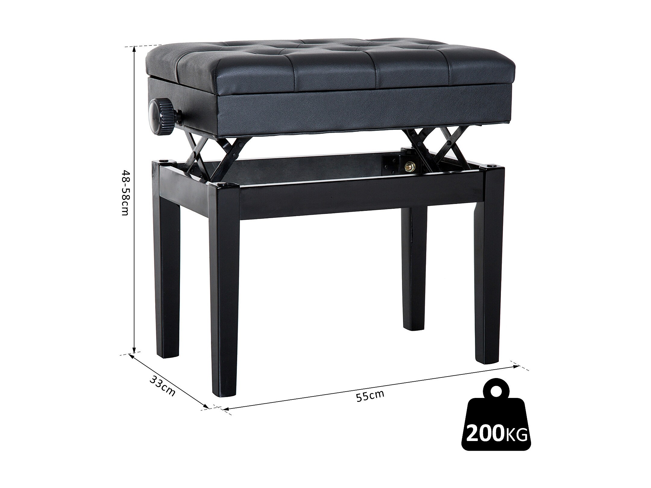 HOMCOM Banquette tabouret siège pour piano hauteur réglable 55L x 33l x 48-58H cm coffre de rangement interne assise revêtement synthétique capitonné bois noir