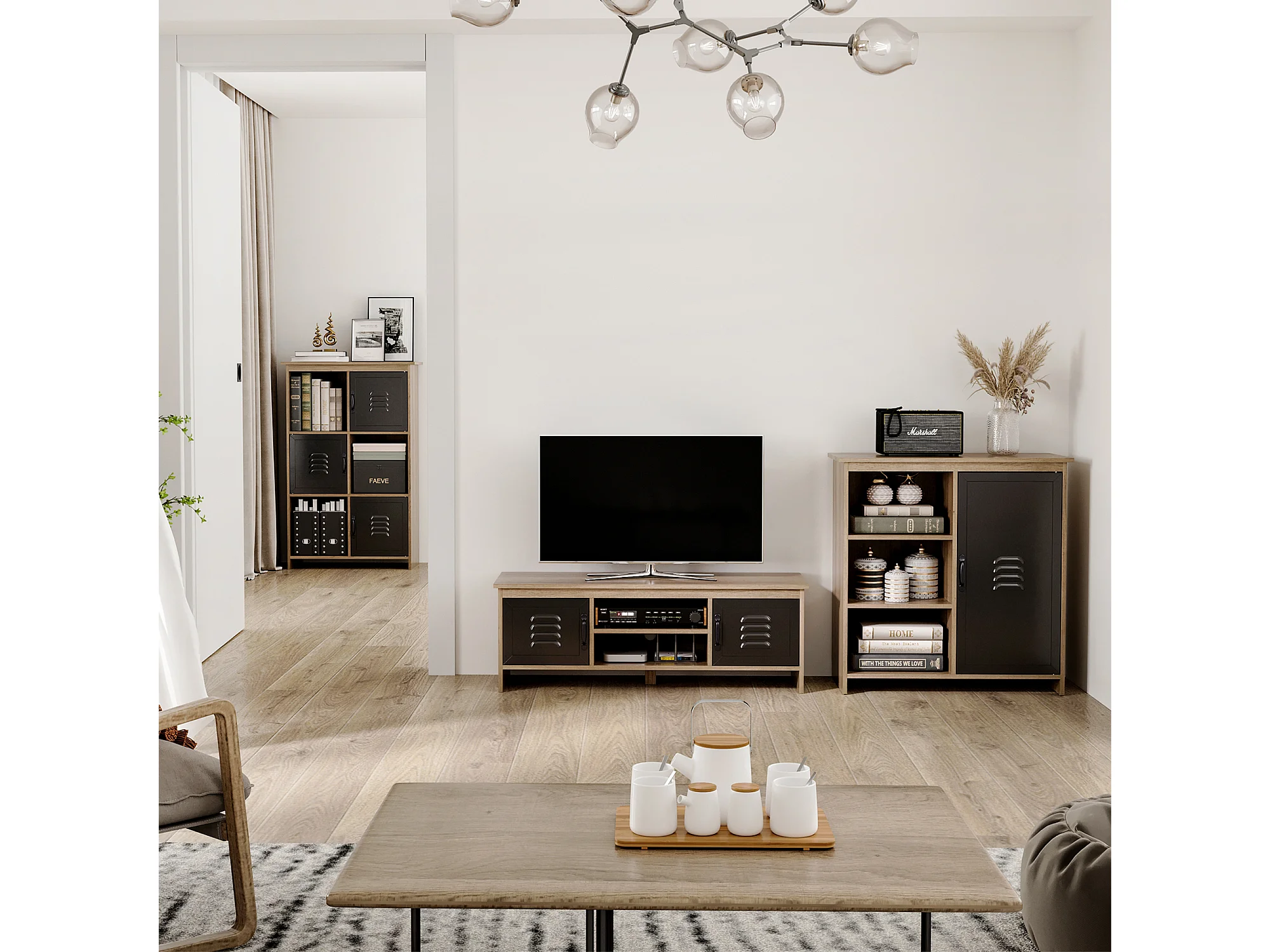 Buffet design industriel - meuble de rangement 3 niches placard - effet bois métal noir