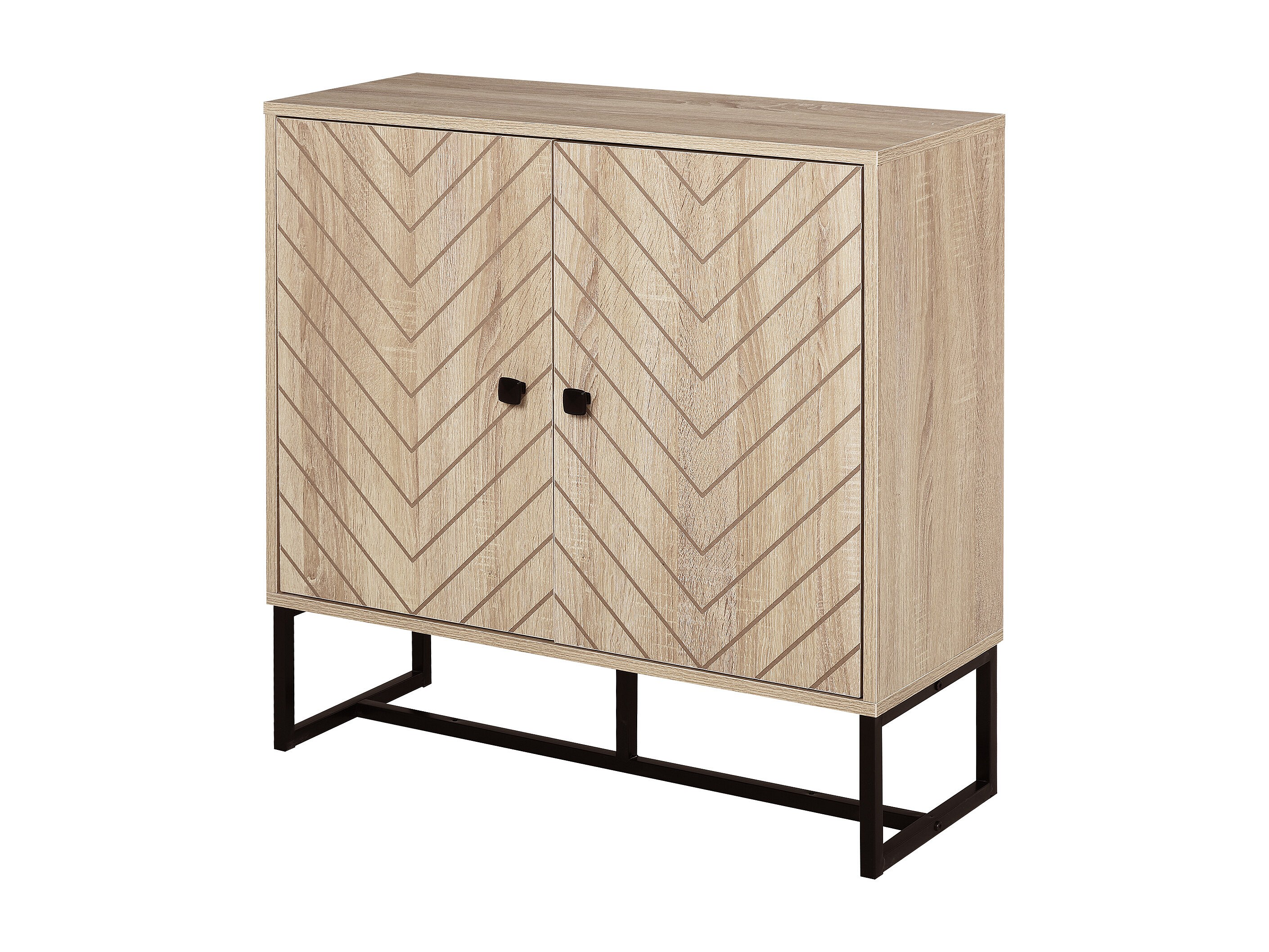 Buffet design industriel - 2 portes avec étagère, 3 tiroirs - piètement métal noir panneaux aspect bois clair