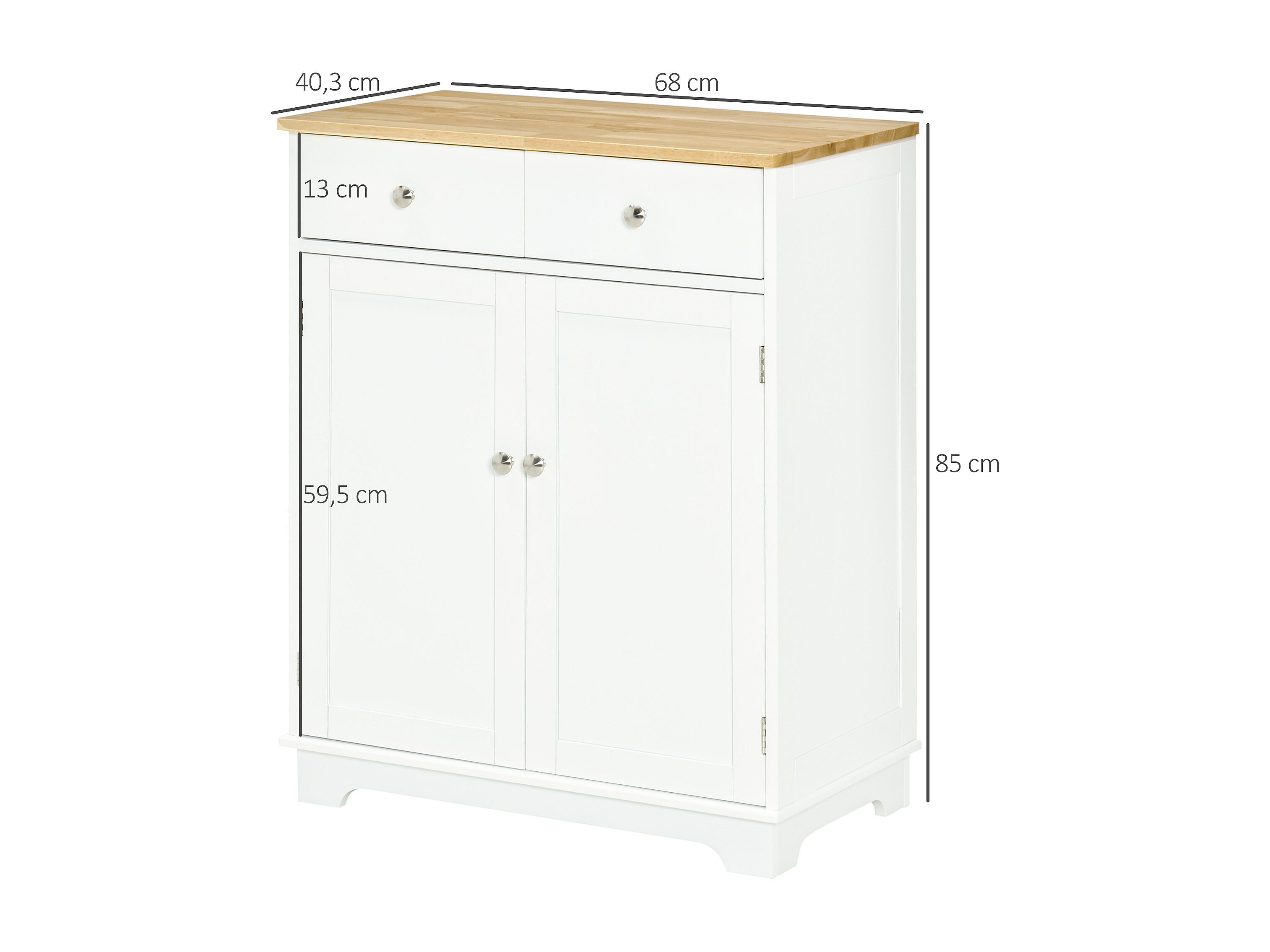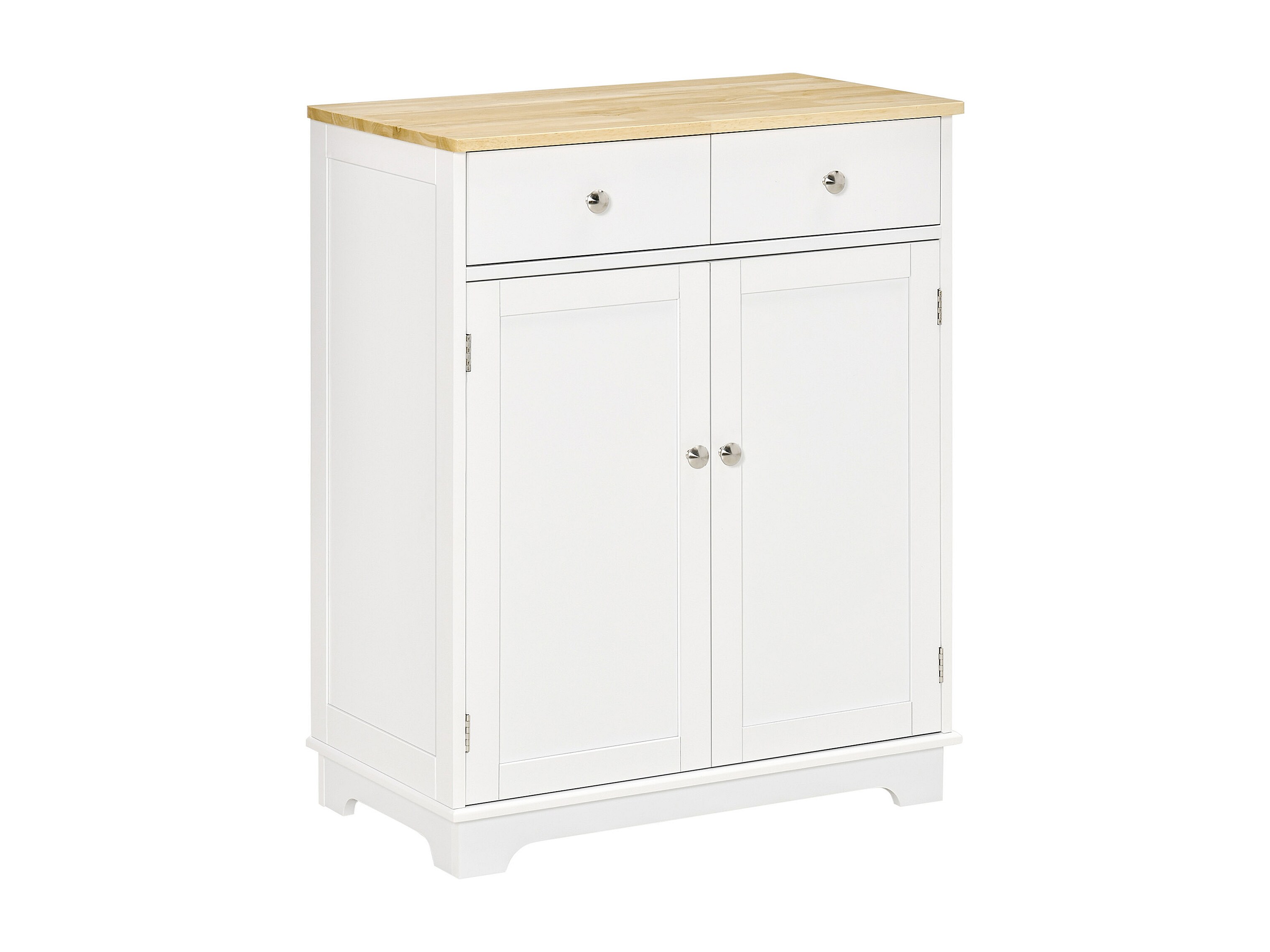Buffet style classique chic multi-rangement 2 portes 2 étagères réglables 2 tiroirs coulissants placard 2 portes MDF blanc plateau aspect bois clair