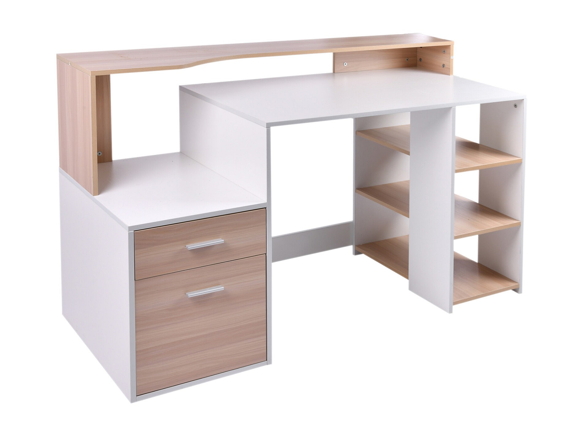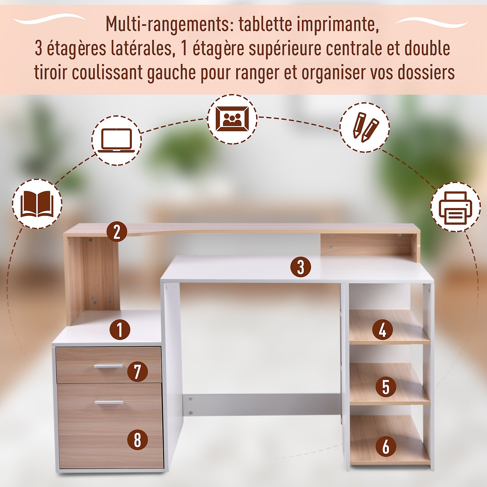HOMCOM Bureau Informatique multimédia Design Multi-rangements 137 L x 55 l x 92 H cm chêne Blanc