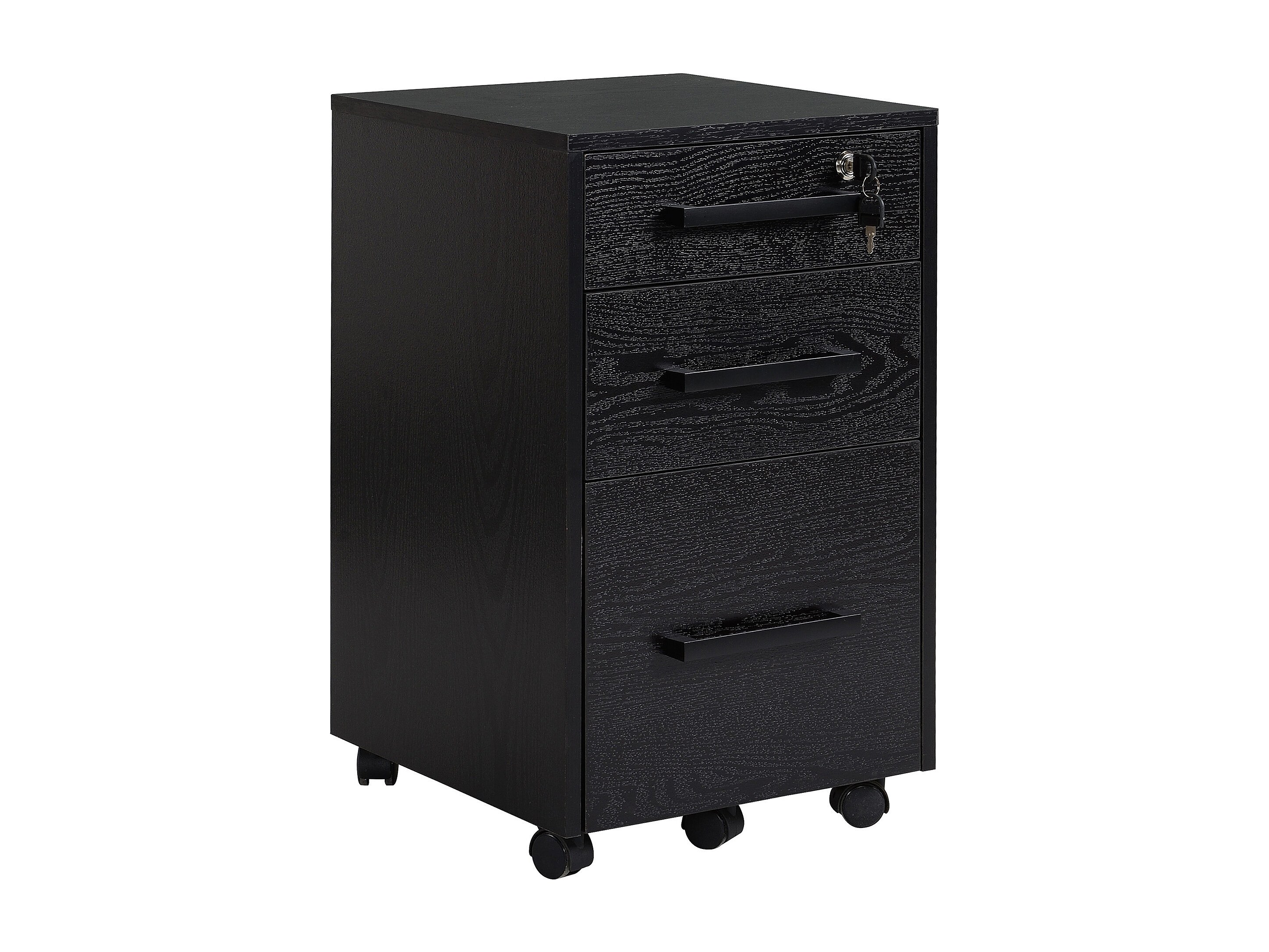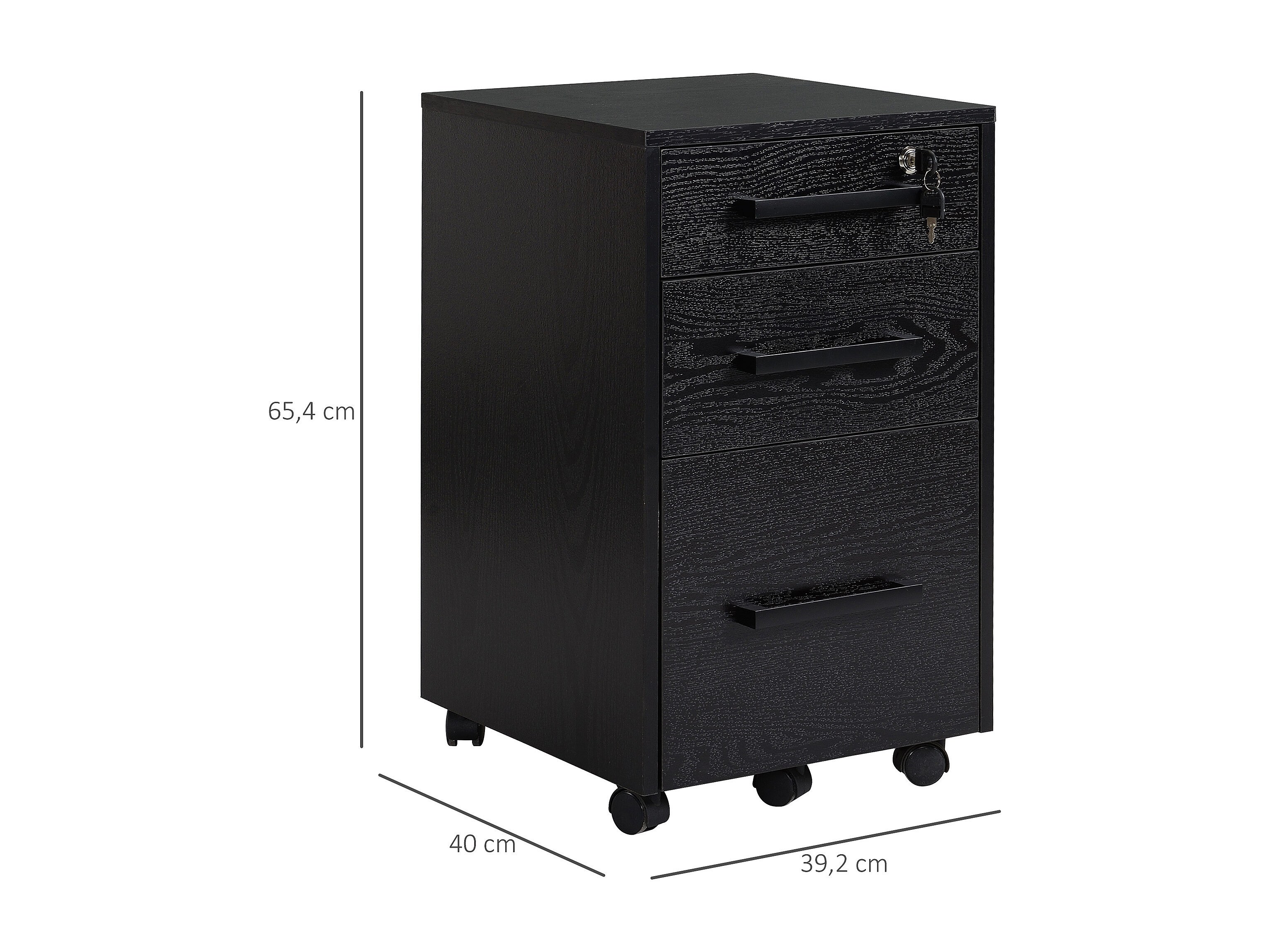 Caisson de bureau rangement bureau sur roulettes 3 tiroirs verrouillables dim. 40L x 41,5l x 61,5H cm noir
