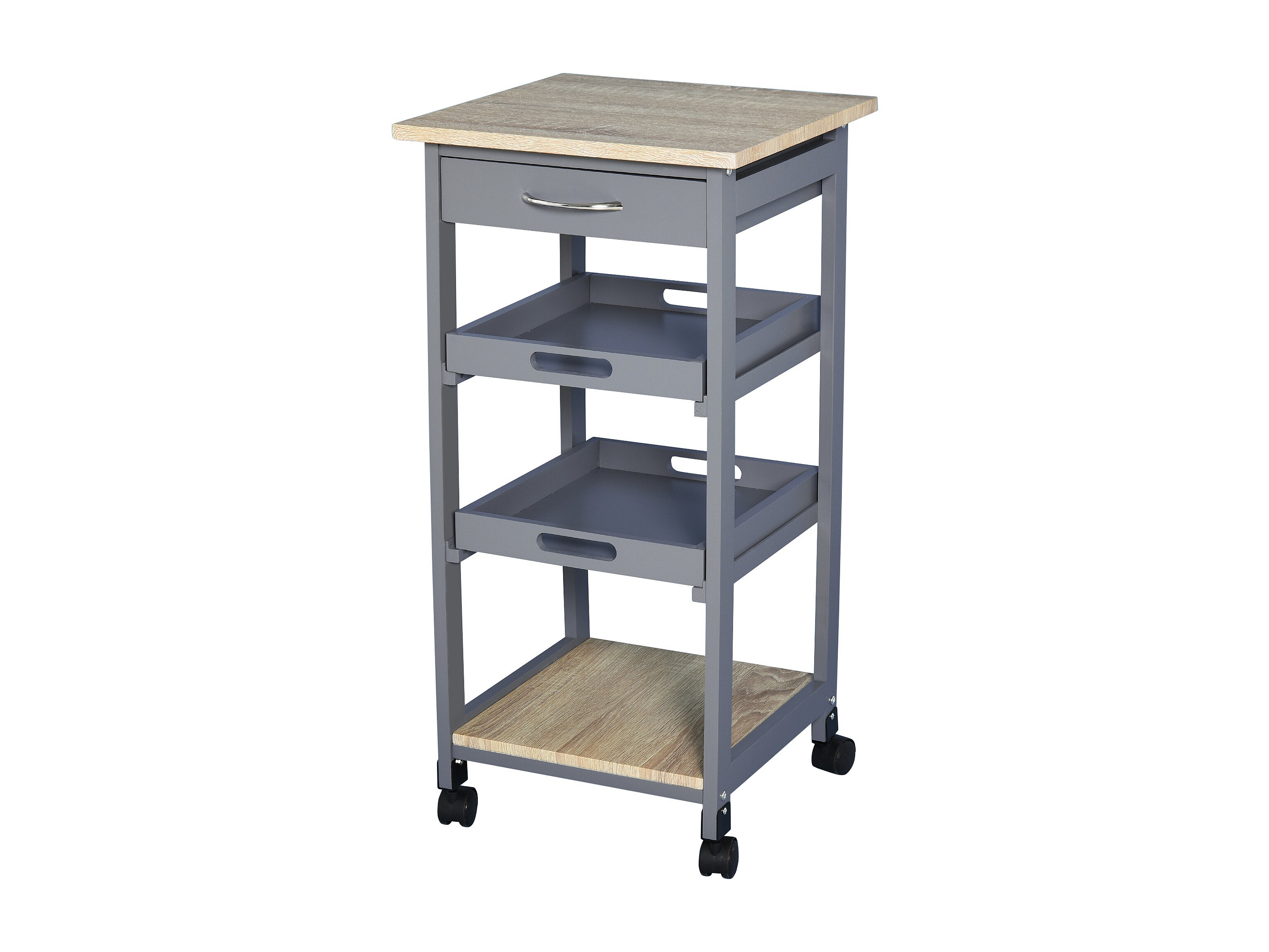 Chariot de service desserte de cuisine à roulettes 2 plateaux amovibles, tiroir, étagère MDF chêne clair bois pin gris