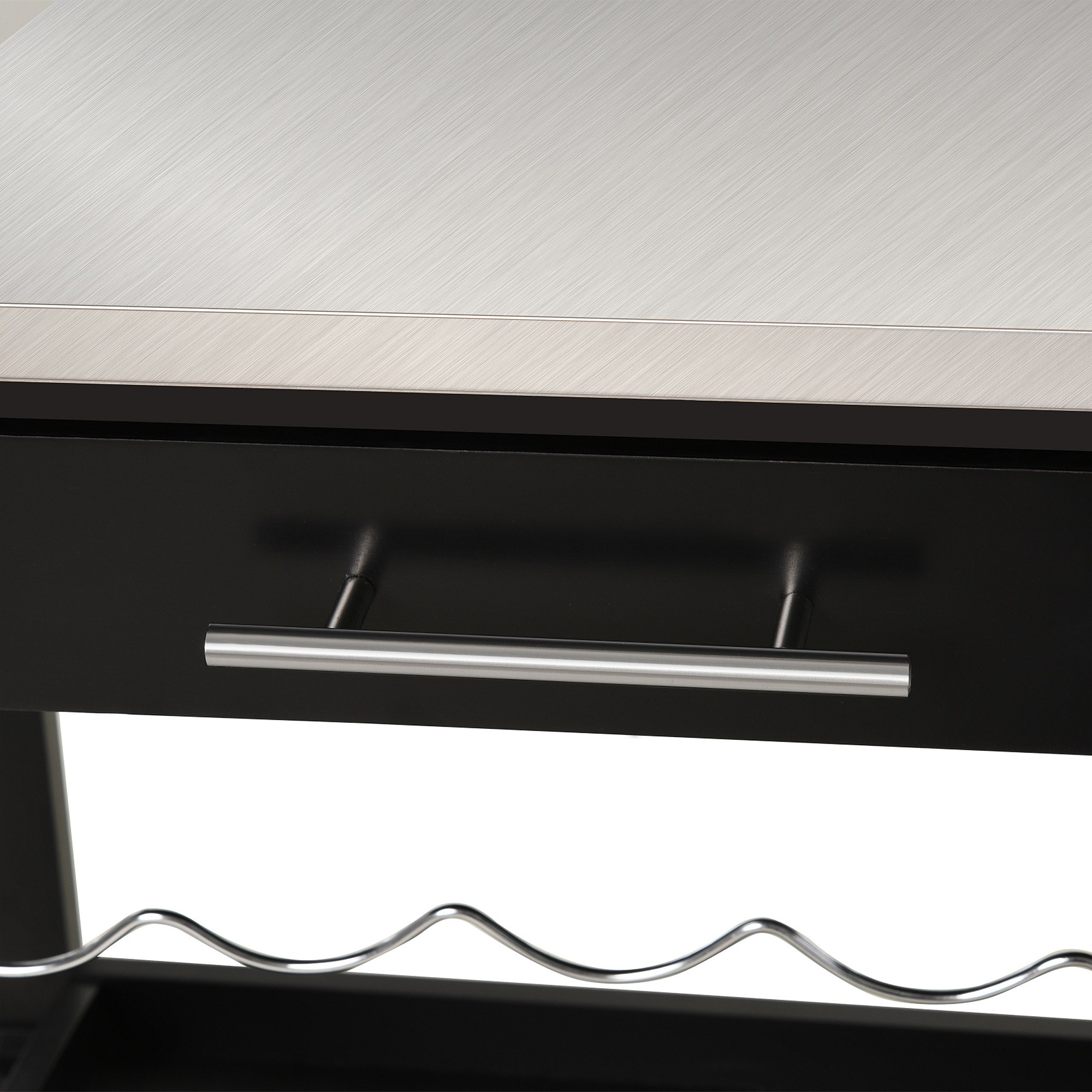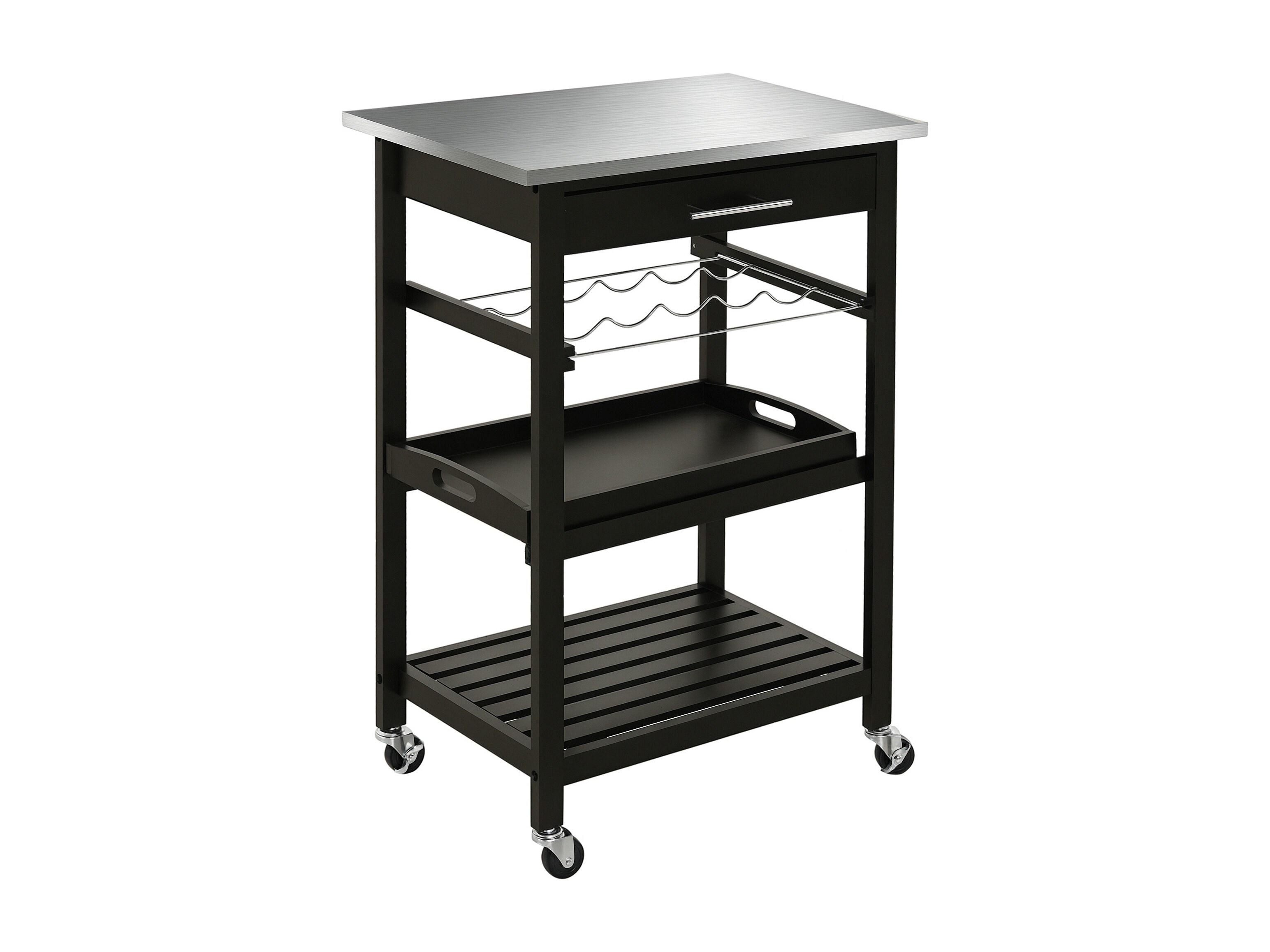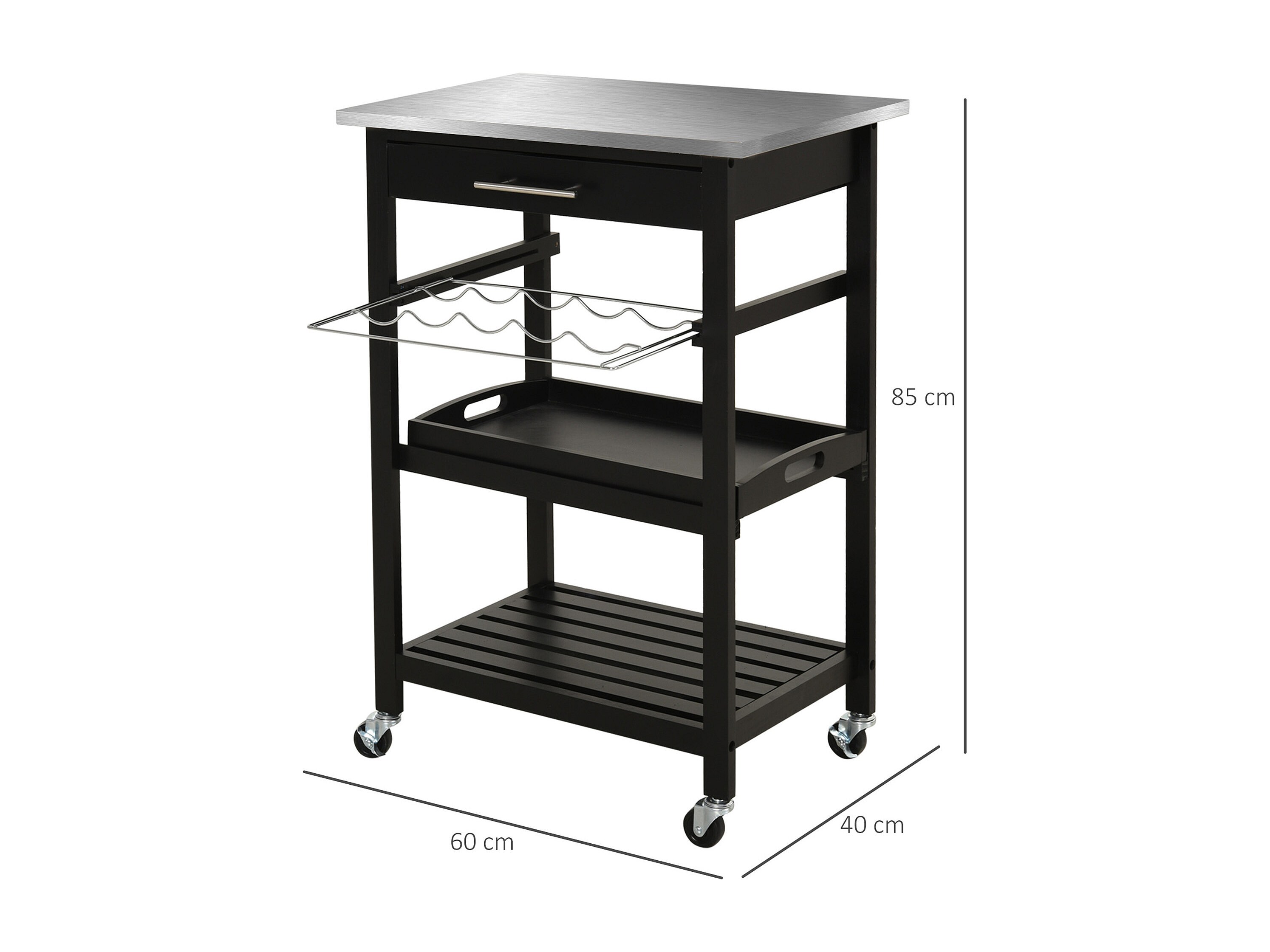 HOMCOM Chariot de service desserte de cuisine à roulettes multi-rangements 60L x 40l x 85H cm plateau acier inox. MDF pin noir