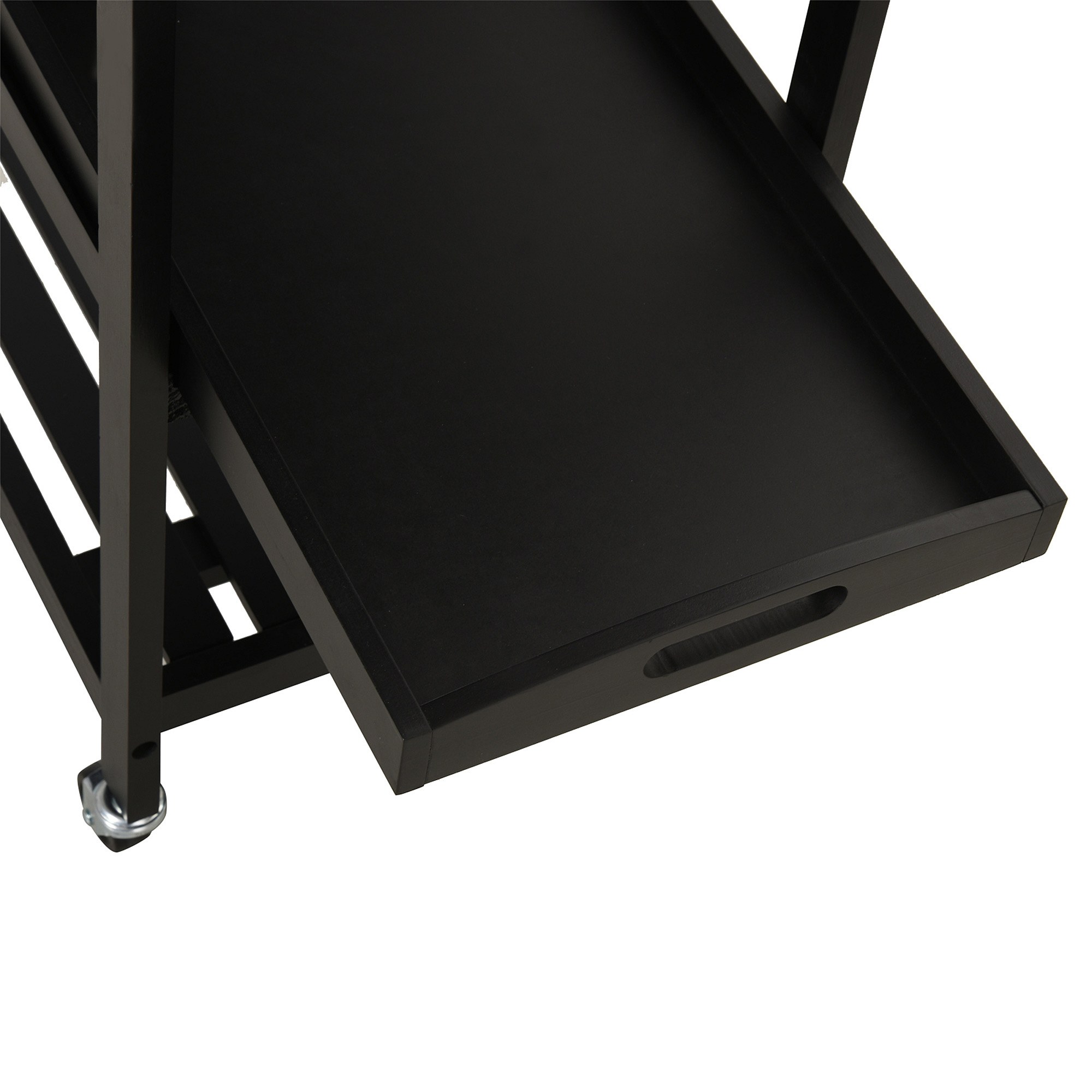 Chariot de cuisine avec plan de travail, meuble de salle à manger, porte-serviette latéral, 140x40x93.5 cm, noir