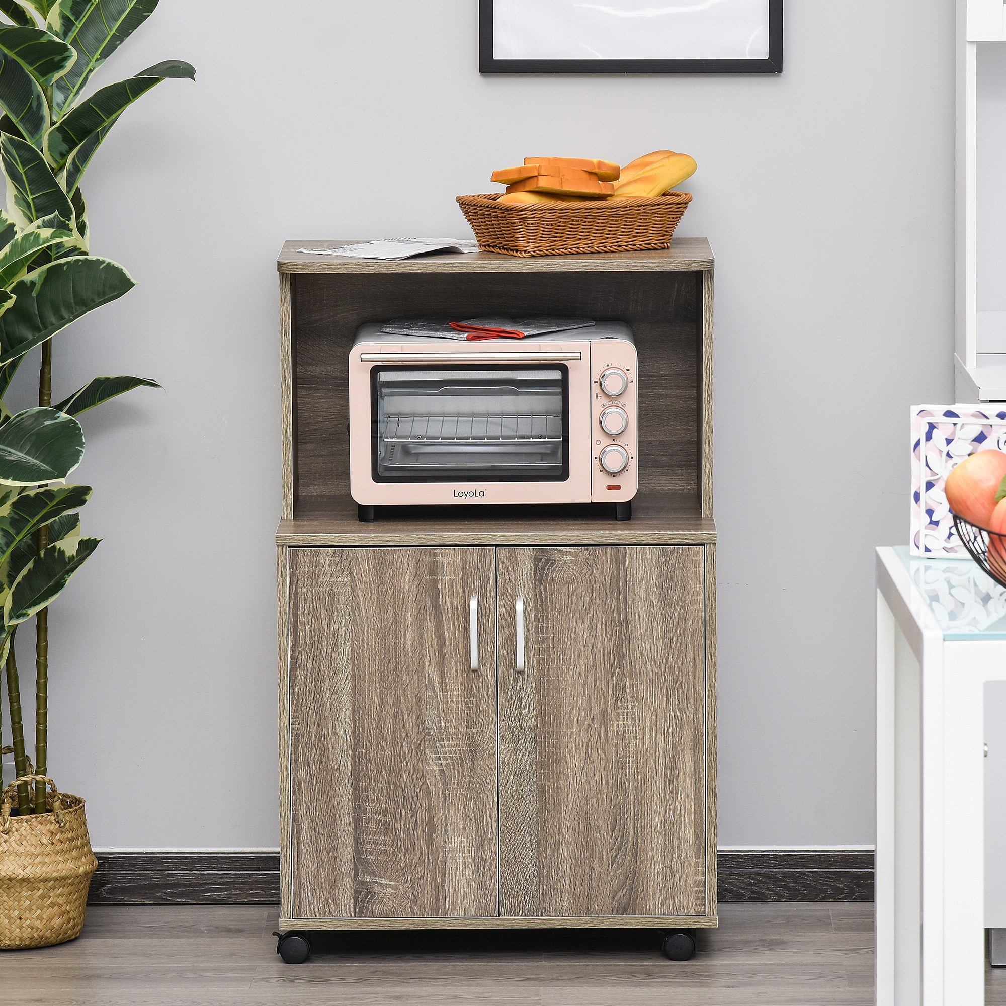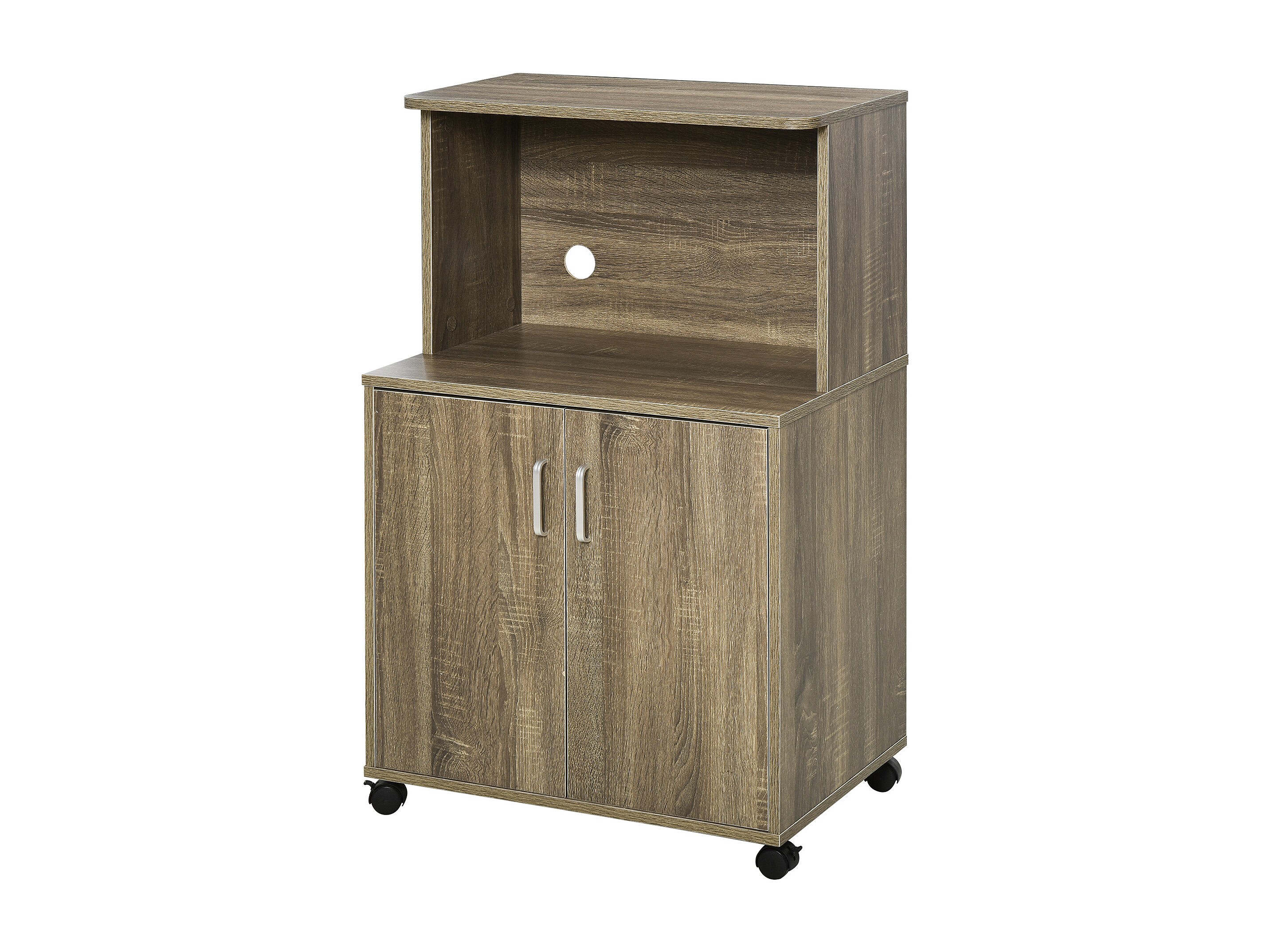 Chariot desserte micro-ondes placard 2 portes - dim. 60,4L x 40,3l x 97H cm - imitation bois