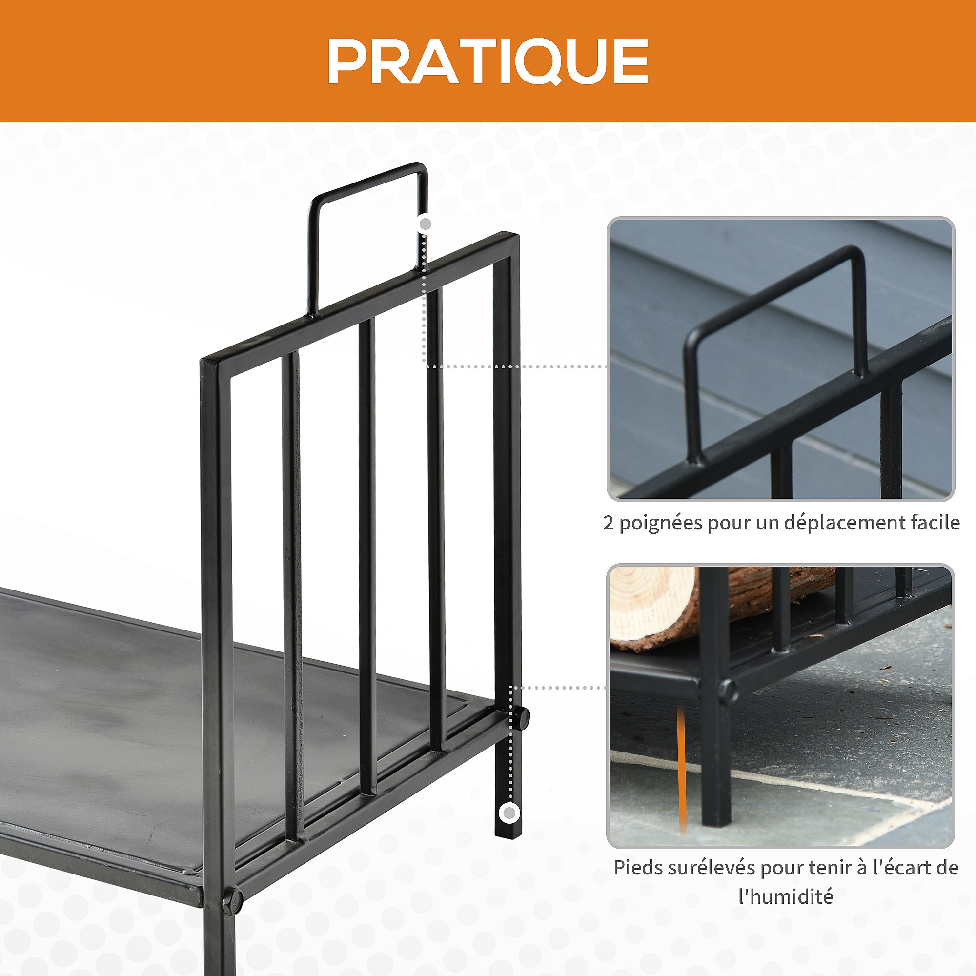 Outsunny Range-bûches rack à bûches style fer forgé dim. 60,5L x 36l x 46,5H cm métal noir