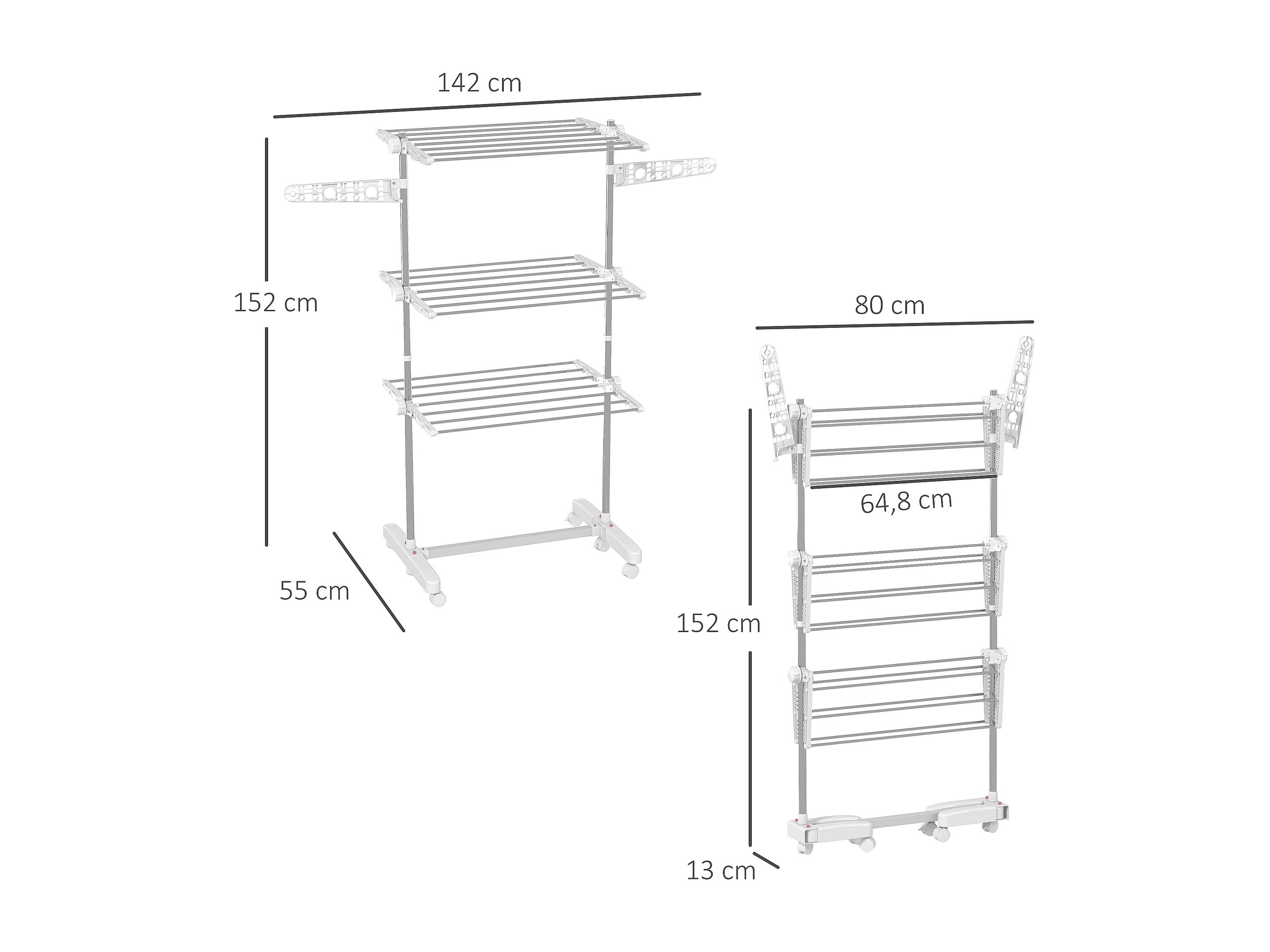 Sechoir à linge étendoir pliable ailes latérales sur 3 niveaux