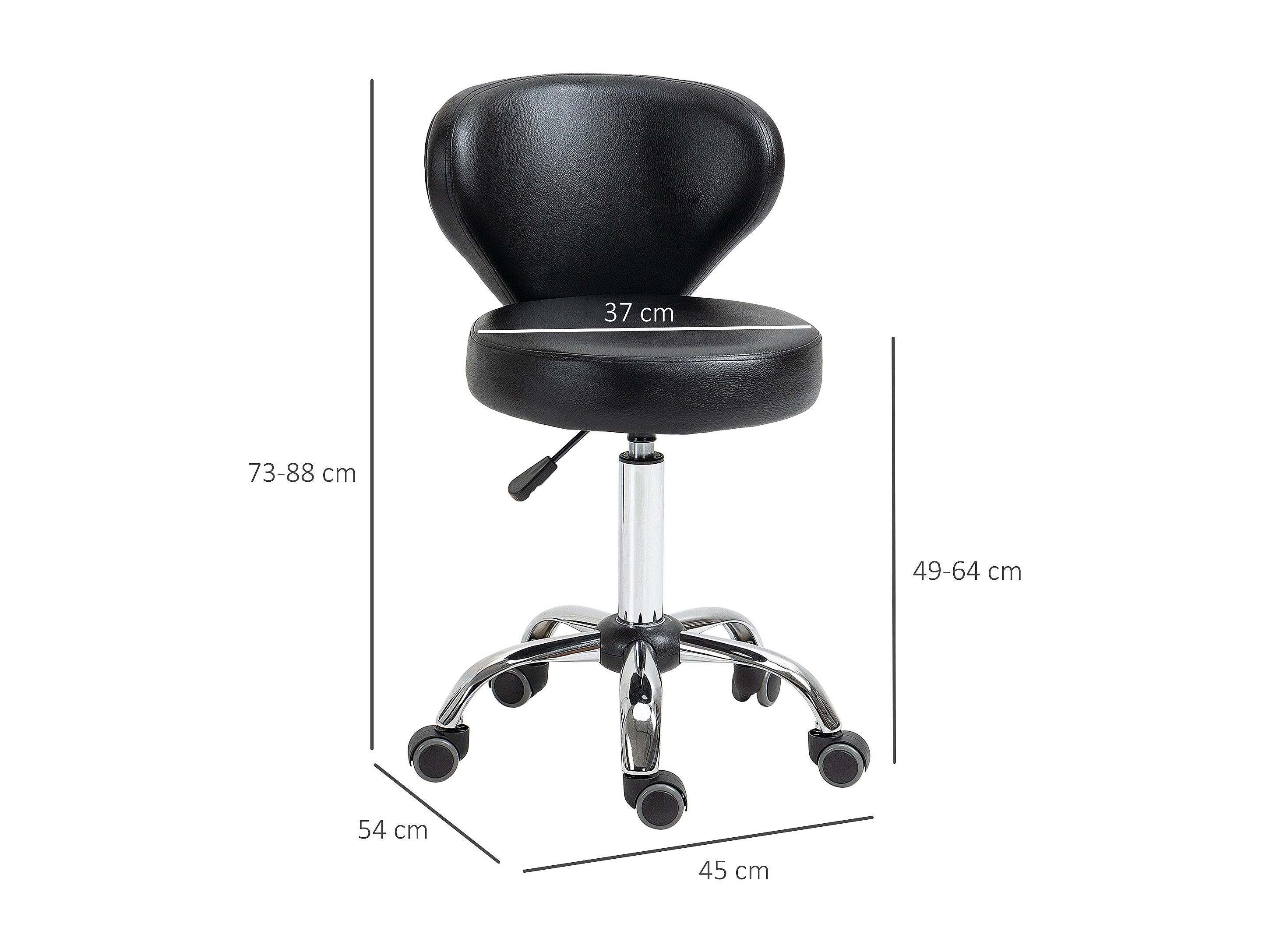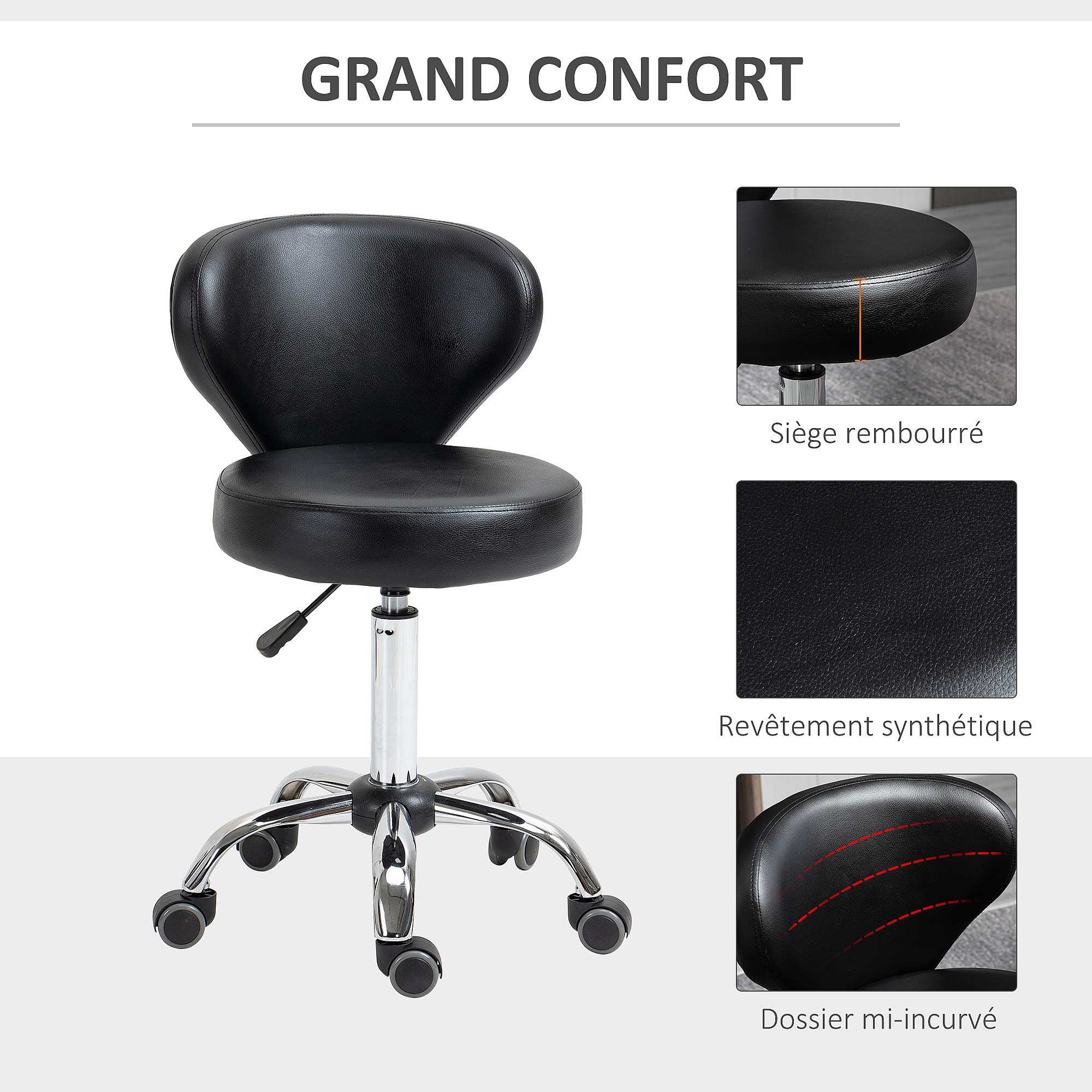 HOMCOM Tabouret de massage - tabouret de travail pivotant 360° - assise réglable 49-64H cm, dossier ergonomique - métal chromé revêtement synthétique noir