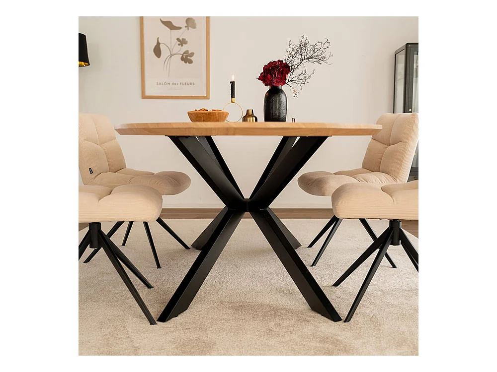 Home Deluxe Ensemble de salle à manger Ovale incl. pied étoile 200 x 120 cm Fishbone Oak