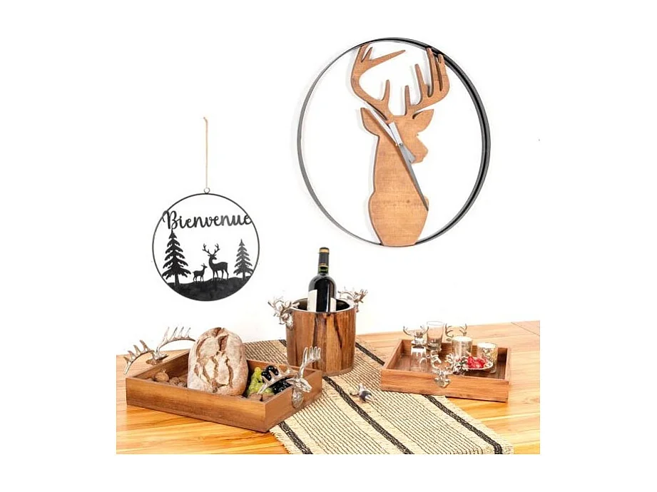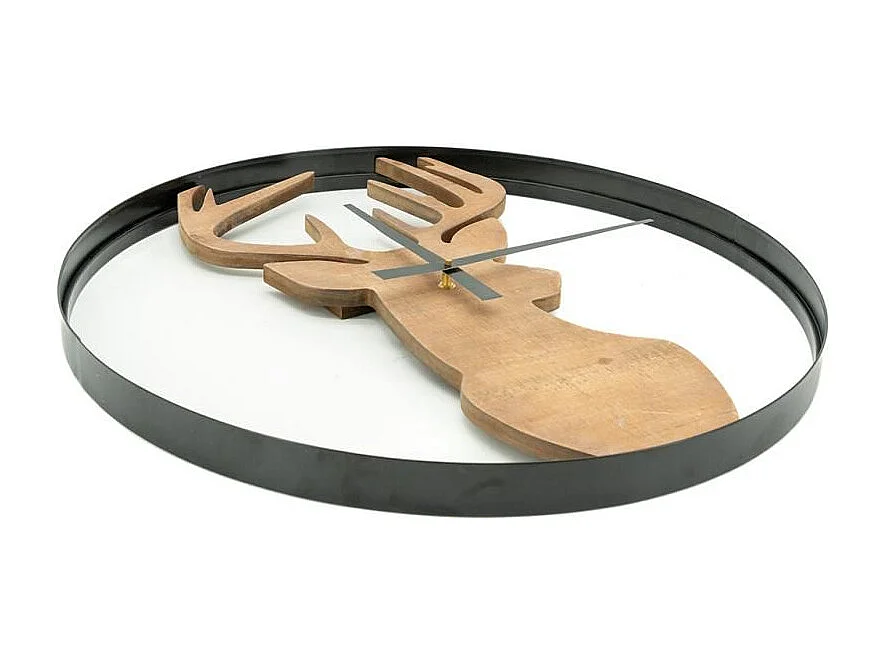 Horloge murale cerf en bois et métal noir – Design nature et décor mural original