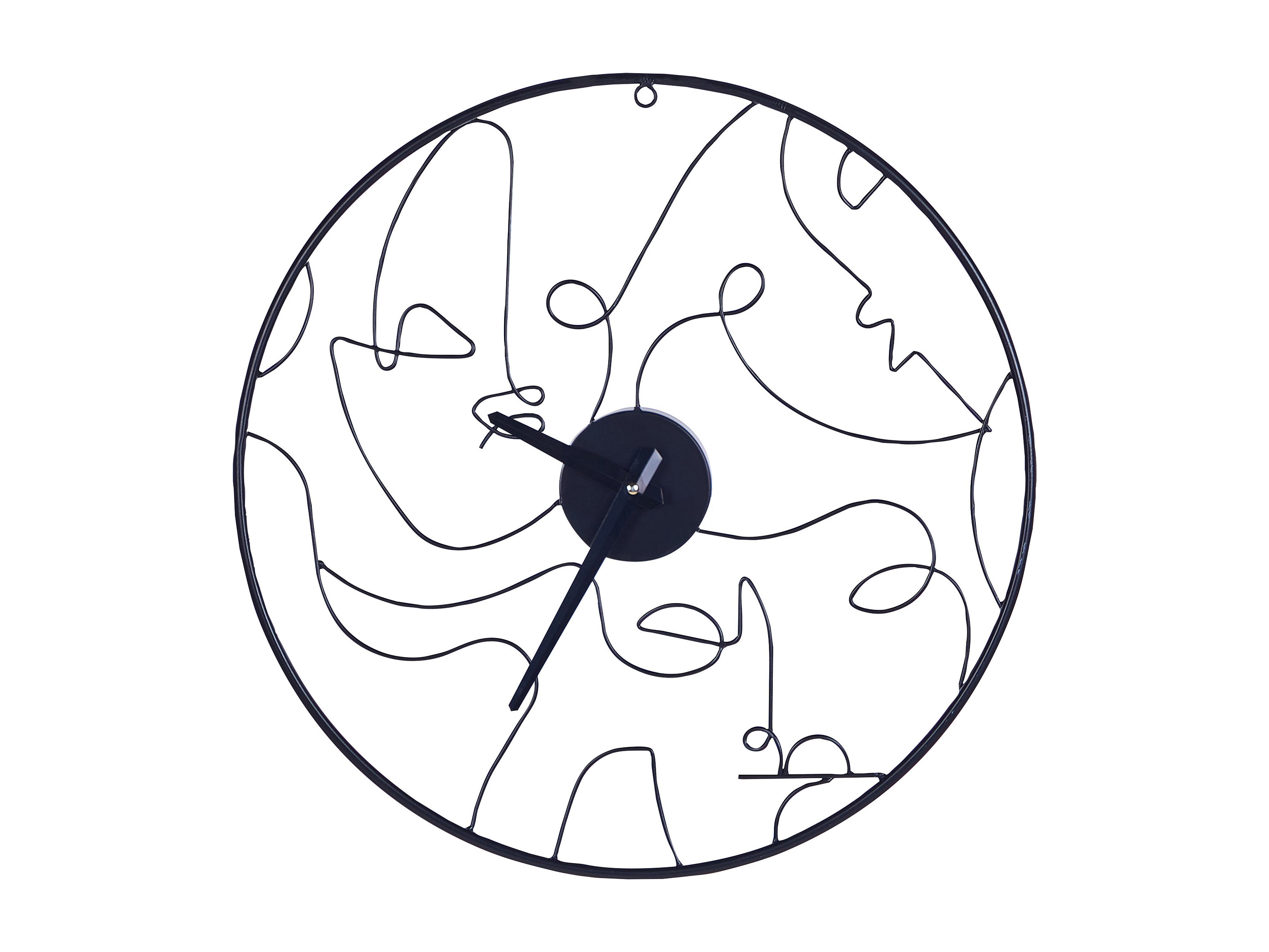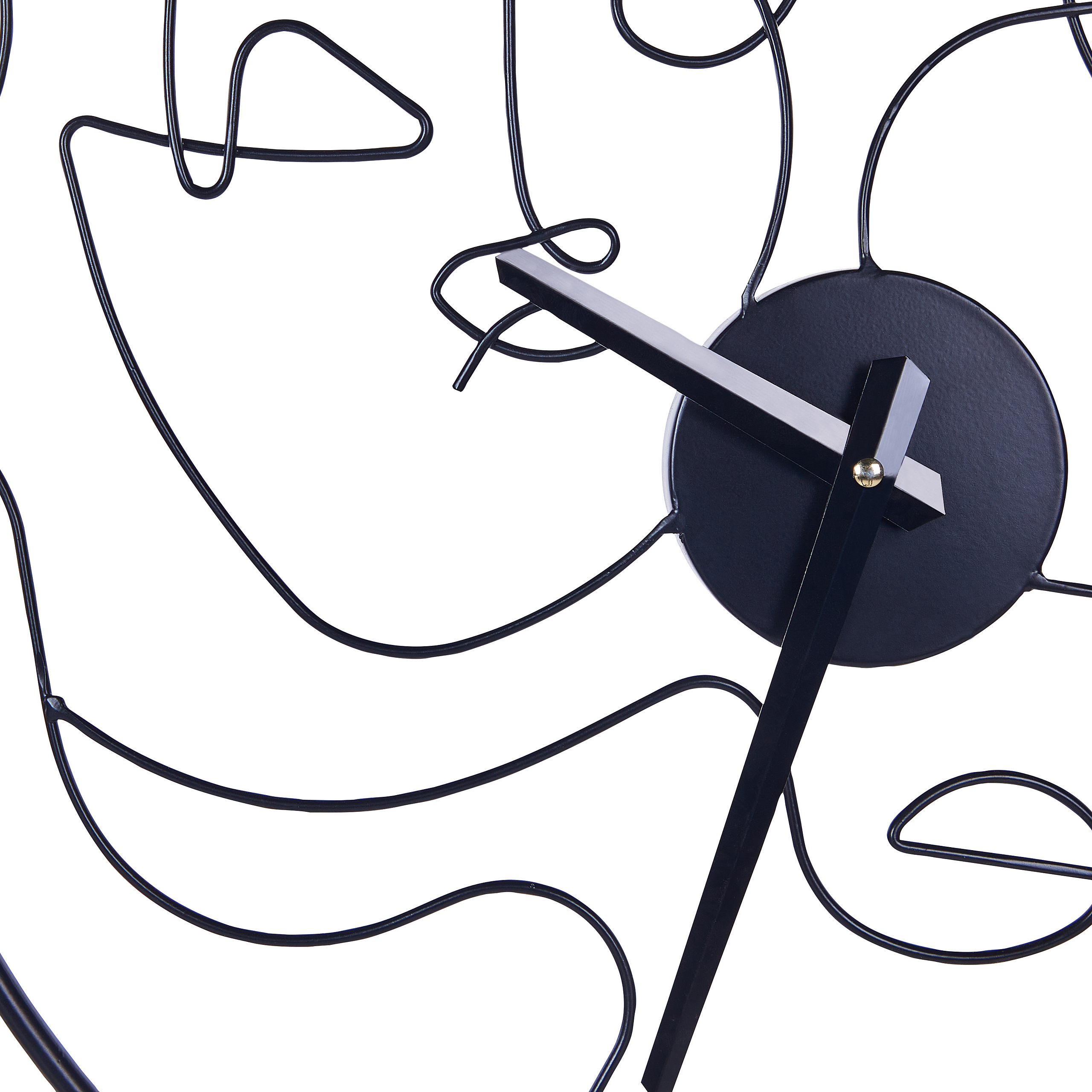 Horloge Murale Rond Faces - Cadre Noir avec Motifs Visages Cubistes - Ø 50x3,5 cm