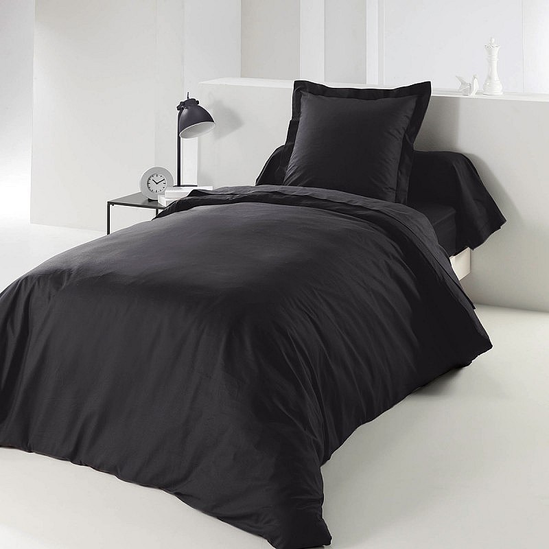 Drap housse 90x190 cm polyester microfibre LAGO bleu marine bonnet 28 cm