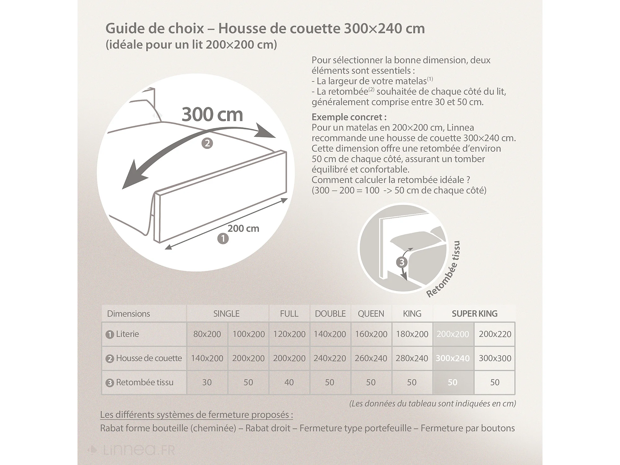 Housse de couette 300x240 cm Percale pur coton PLUMES