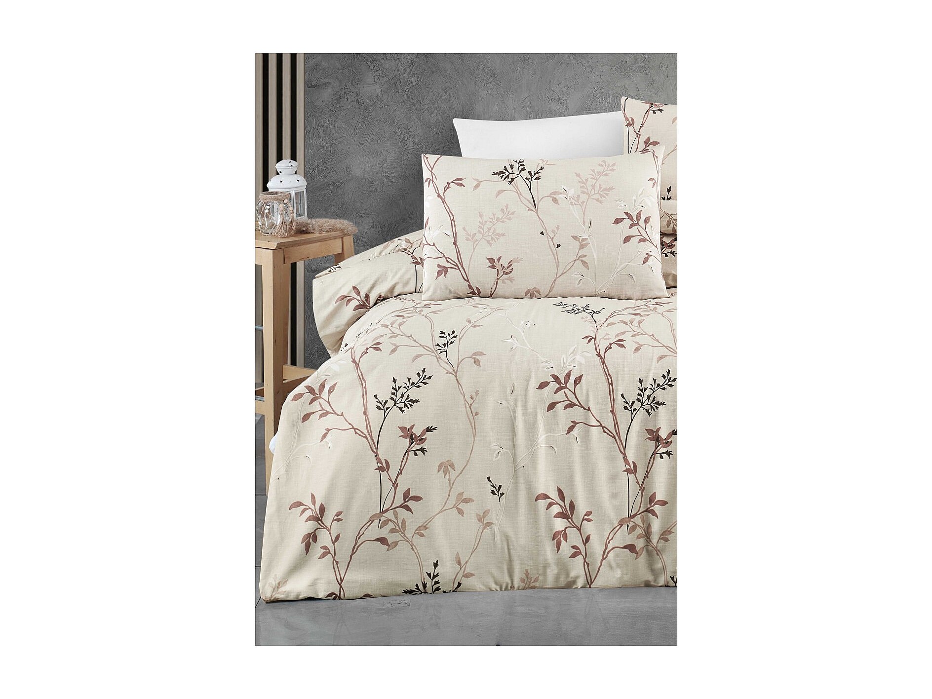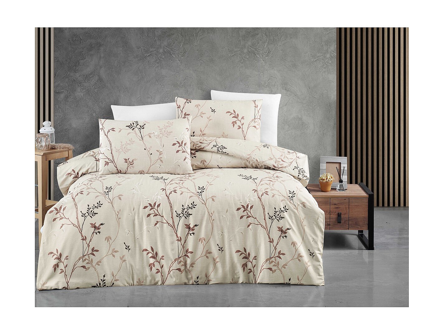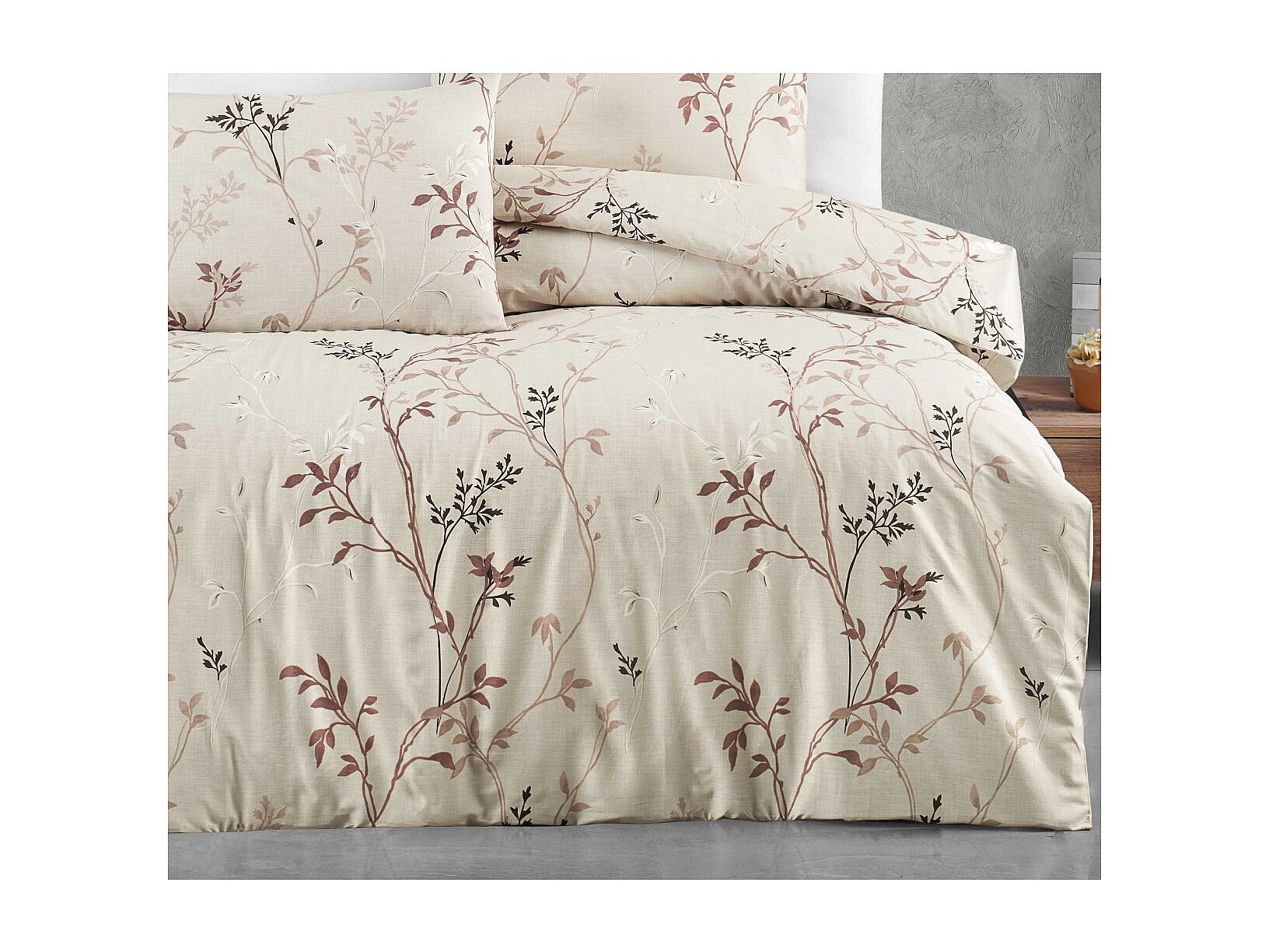 Housse de couette + taie(s) oreiller "Fiona beige" 100% coton imprimé.