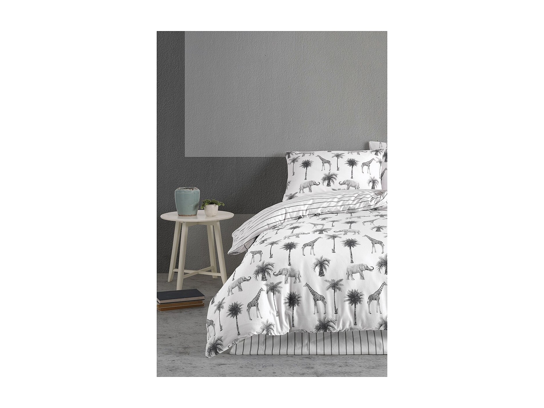 Housse de couette + taie(s) oreiller "Jungle" 100% coton imprimé.