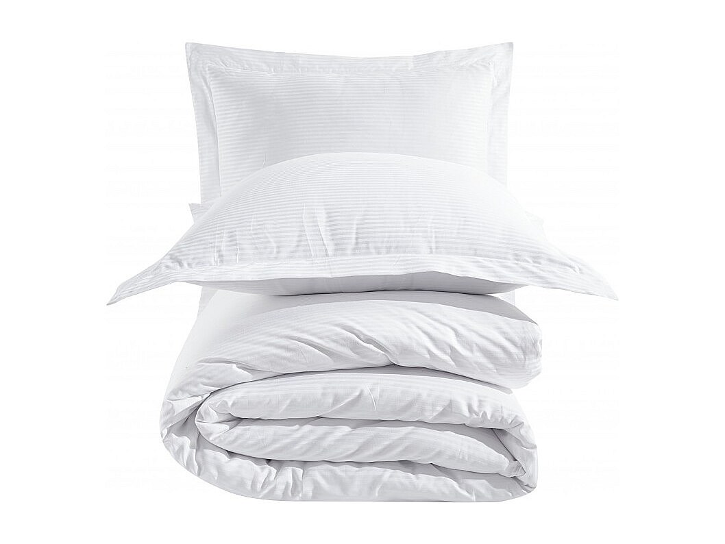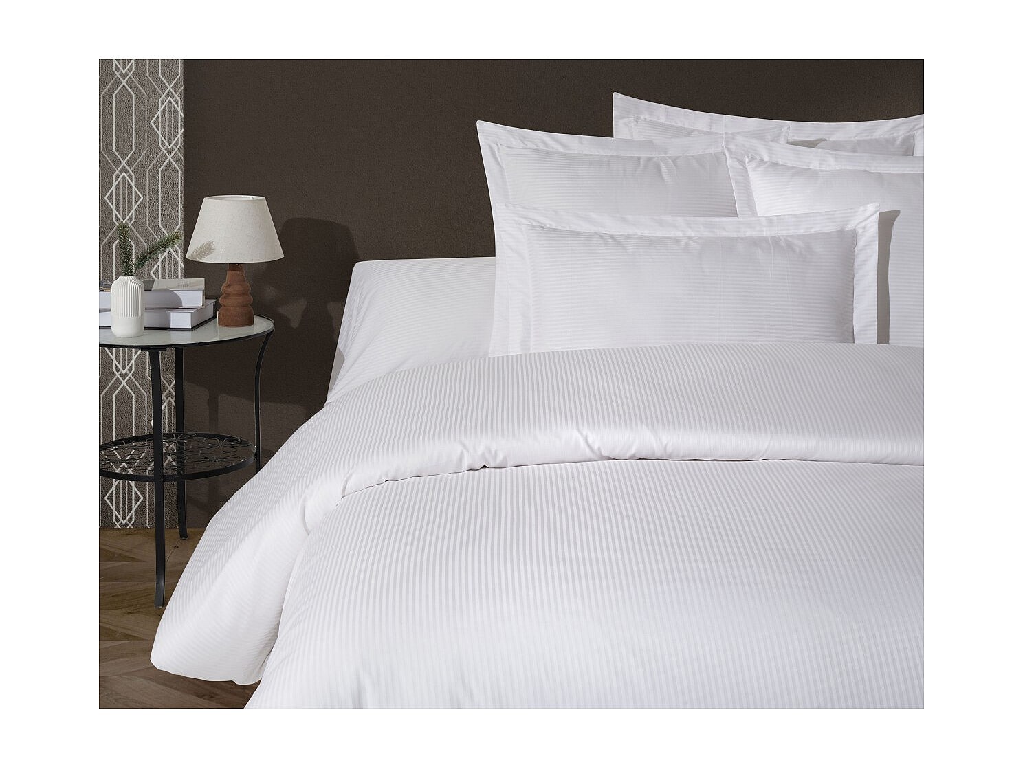 Housse de couette + taie(s) oreiller satin de coton rayé blanc