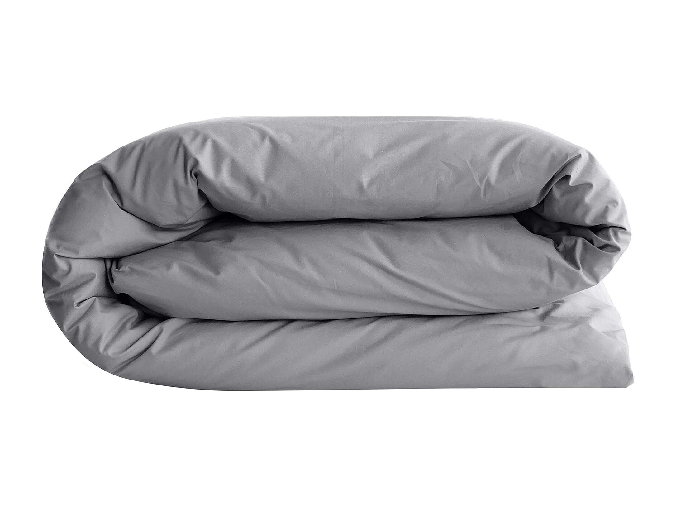 Housse de couette uni 140x200 cm percale de coton MANOIR gris Ardoise