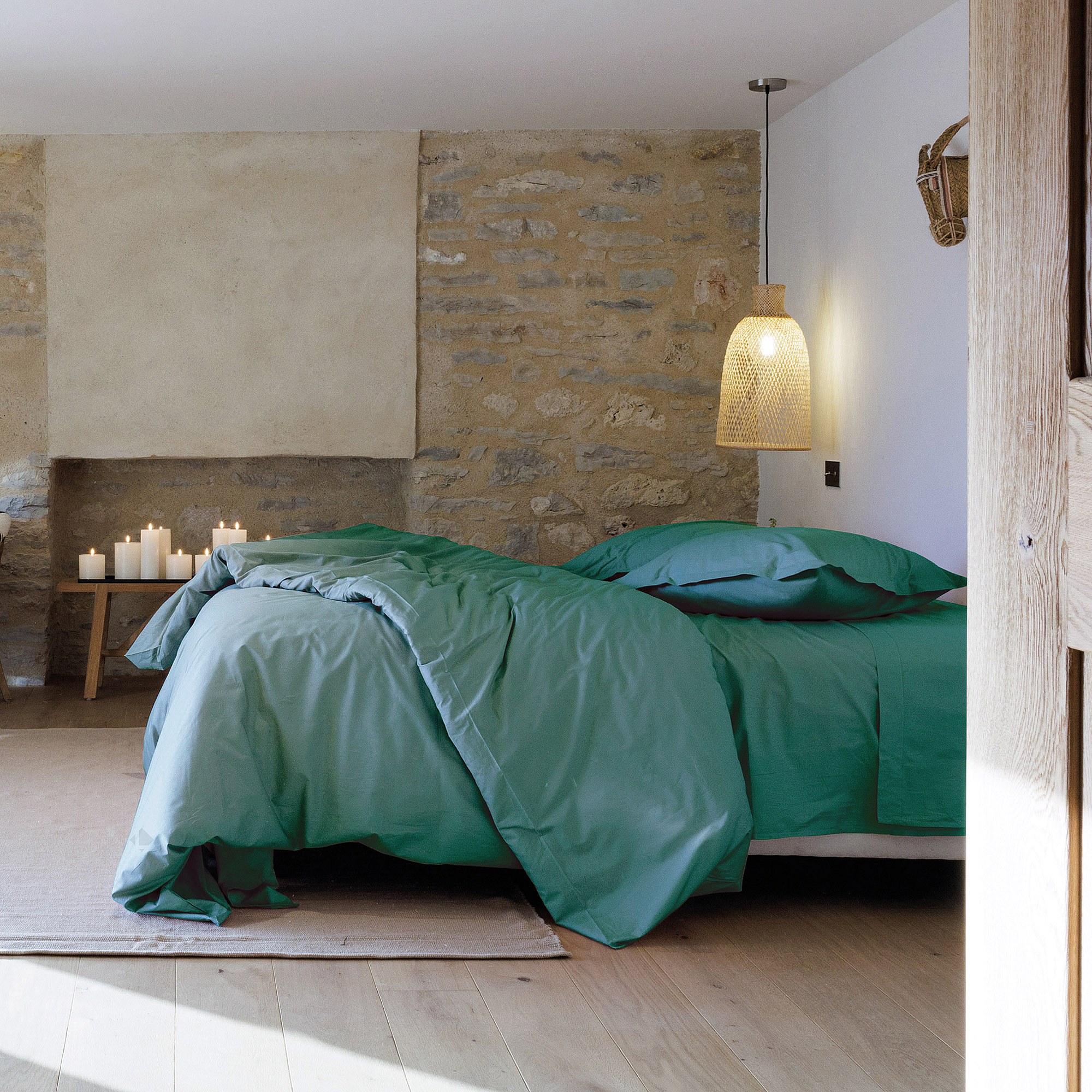 Housse de couette uni 200x200 cm percale de coton MANOIR vert Opale